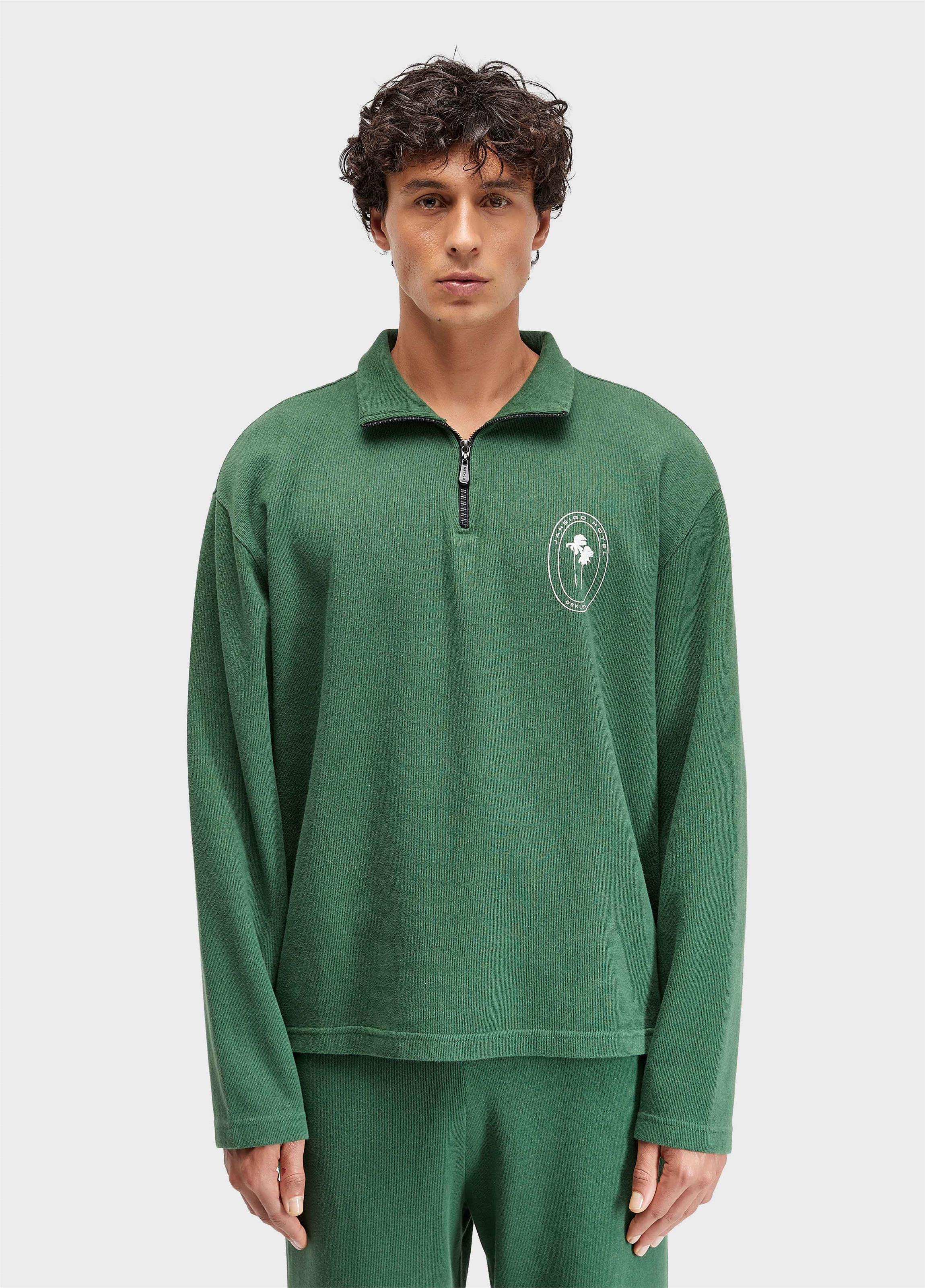 Agasalho masculino, com textura canelada, na base de modelagem Regular. Produzida em malha 100% Algodão Certificado. A produção do algodão nacional certificado contribui para redução dos impactos ambientais, utiliza energia renovável, reduz o consumo de água e fomenta o aprimoramento social e ambiental das cadeias produtivas brasileiras. Além disso, a peça possui amaciamento Organic Mint Wash, um processo natural formulado à base do óleo essencial da menta orgânica, cultivada em pequenas hortas que fazem parte de um projeto social que promove a recuperação e ressocialização de dependentes químicos. Bandeiras: Respect Our People e Regenerate Life. Peça exclusiva da cápsula Hotel JANEIRO HOTEL, desenvolvida em edição limitada.