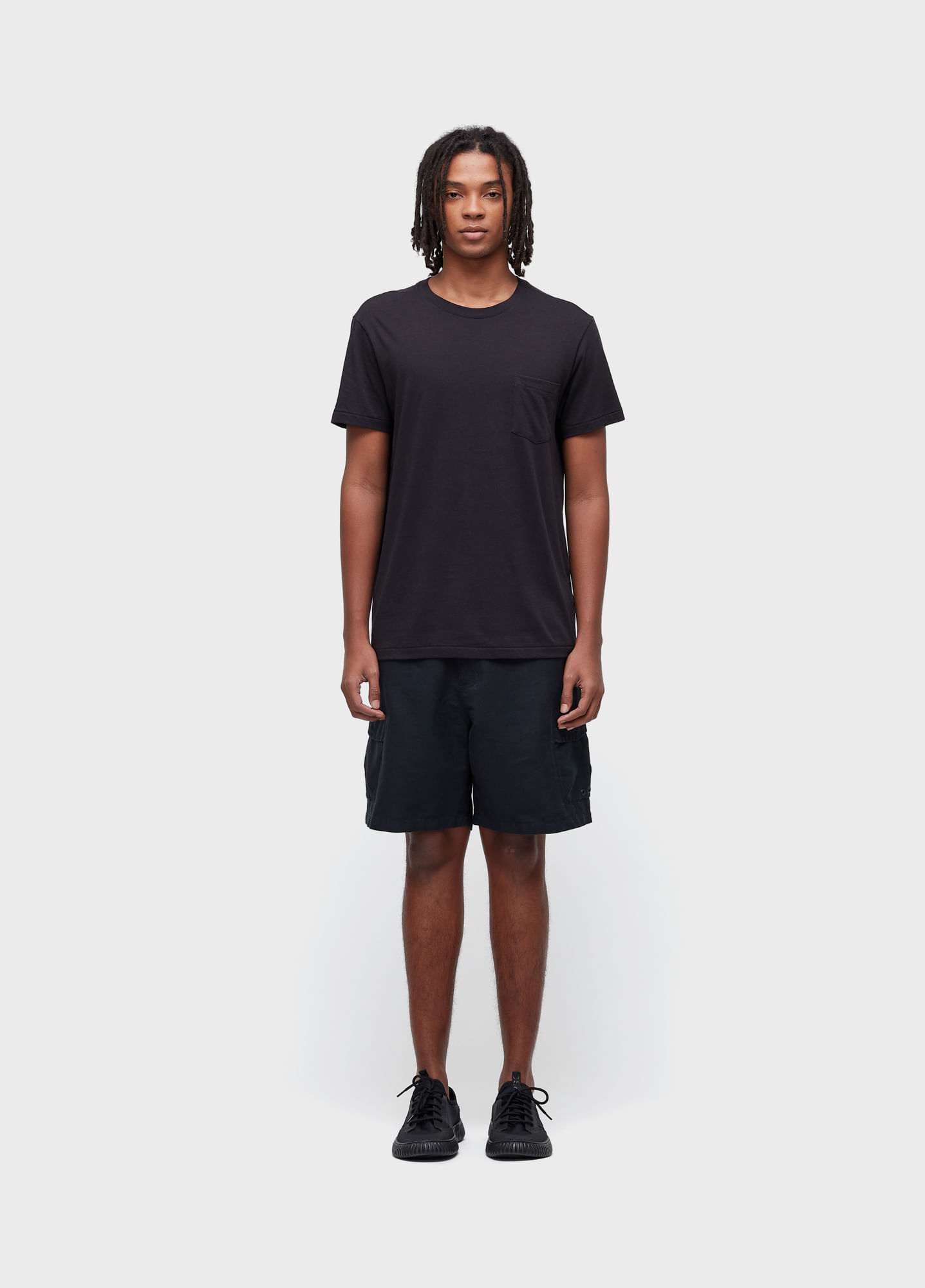 Bermuda Masculina cargo, comprimento na altura do joelho, feita em tecido de linho com algodão. Peça lavada e amaciada.