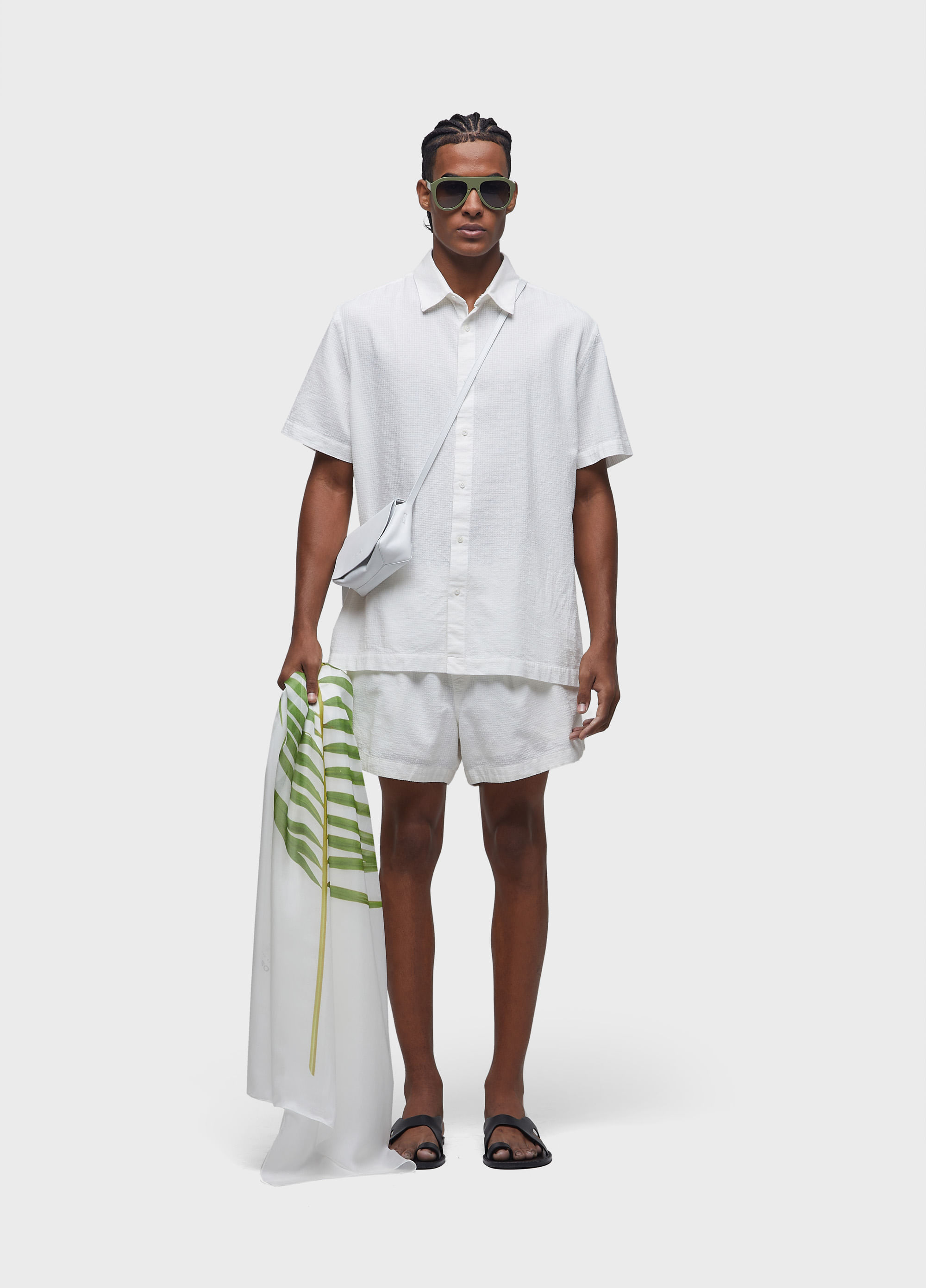 Bermuda com elástico na cintura para melhor conforto, feita em algodão texturizado.