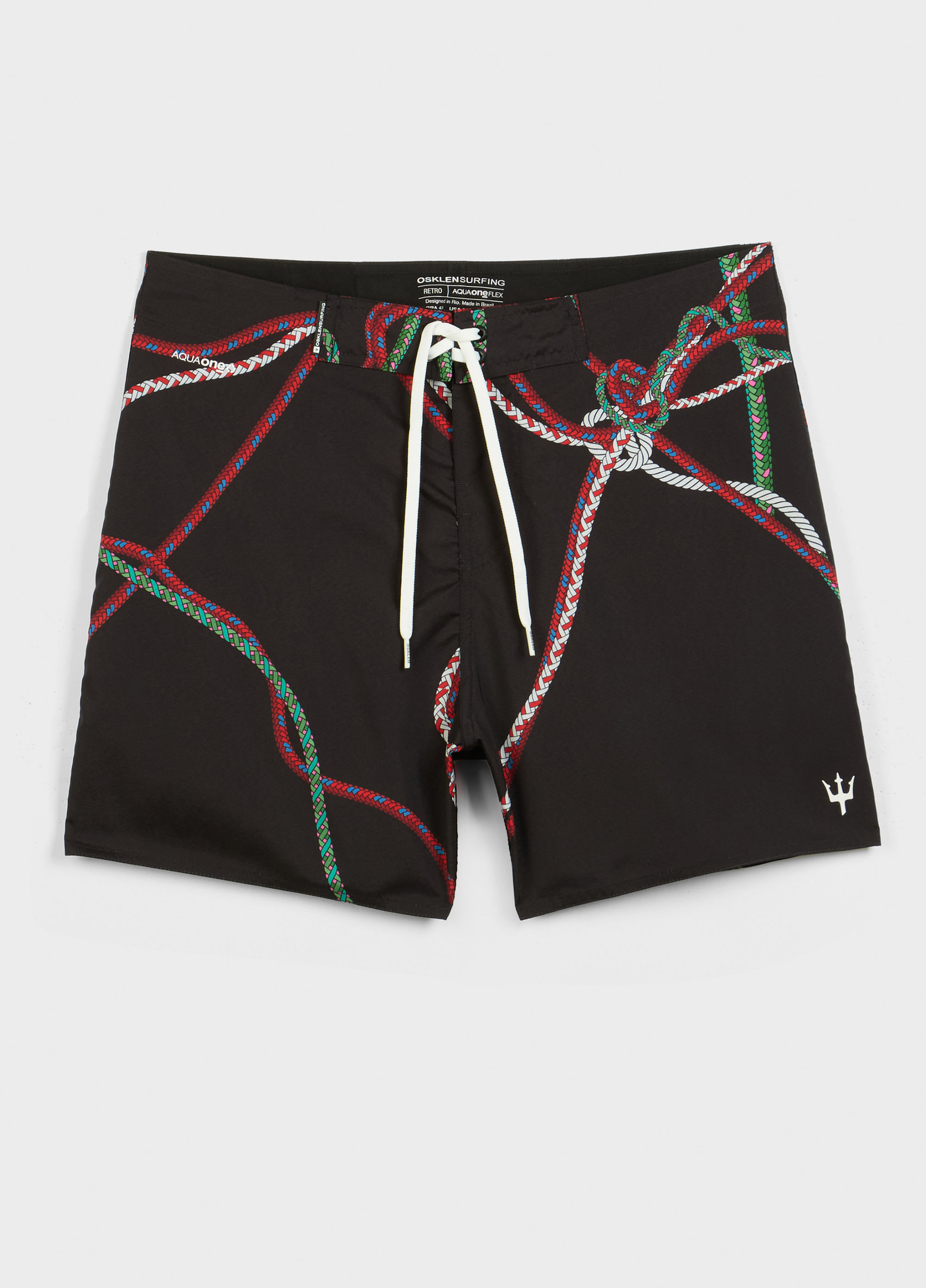 Bermuda surf masculina em tecido exclusivo Aquaone Flex - Tecido produzido a partir do reaproveitamento de garrafas PET - Redesign Waste. • Tecido Flexível - Garante conforto e liberdade de movimento. • Material de secagem rápida. • Modelagem Retro com lateral 17". . • Estampa exclusiva Nós. • Made in Rio.