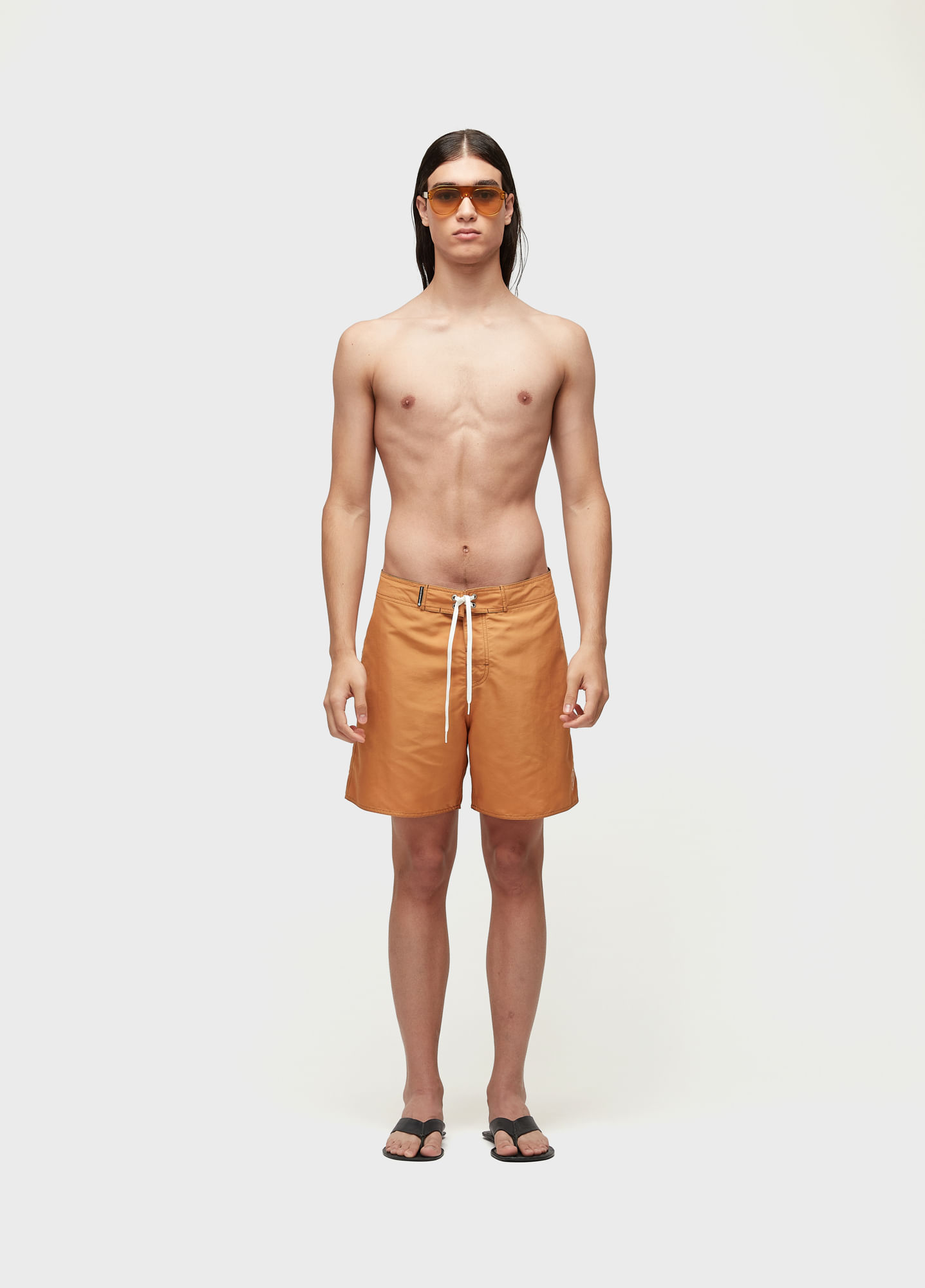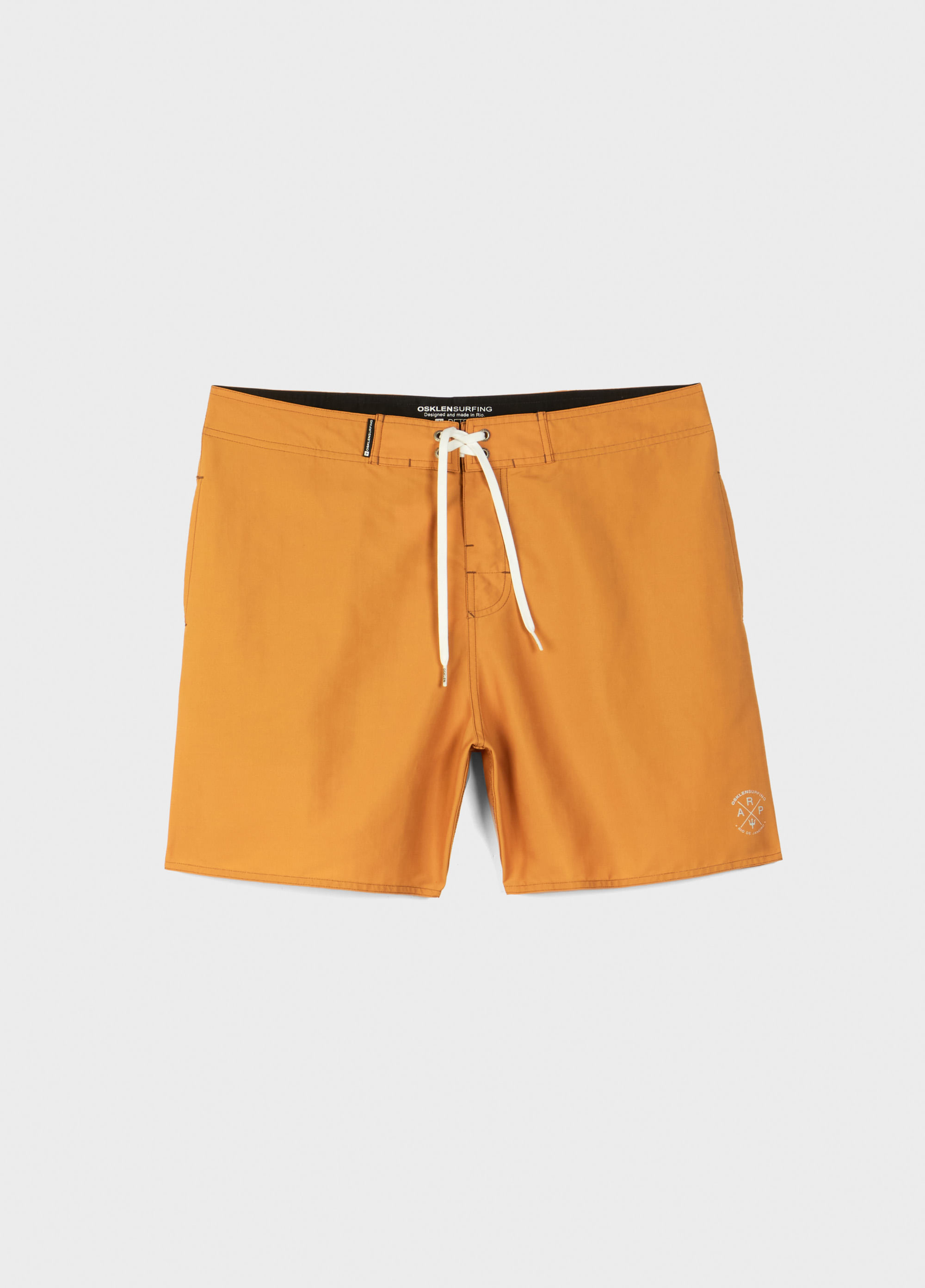 Bermuda surf masculina em tecido de Poliamida. Modelagem Retro com lateral 17". Peça lisa com fita de algodão listrada nas laterais.