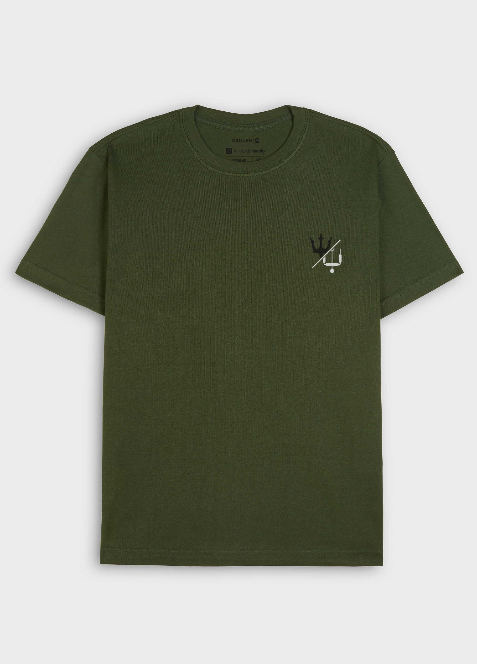 Big shirt masculina em Malhão Pet, E Fabric, 50% algodão certificado 50% poliéster Reciclado (PET), base de modelagem Regular. Bandeira Re-Design Waste. Ao usar PET reciclado em suas coleções a Osklen evita o descarte no meio ambiente de cerca de 272 mil garrafas PET por ano.