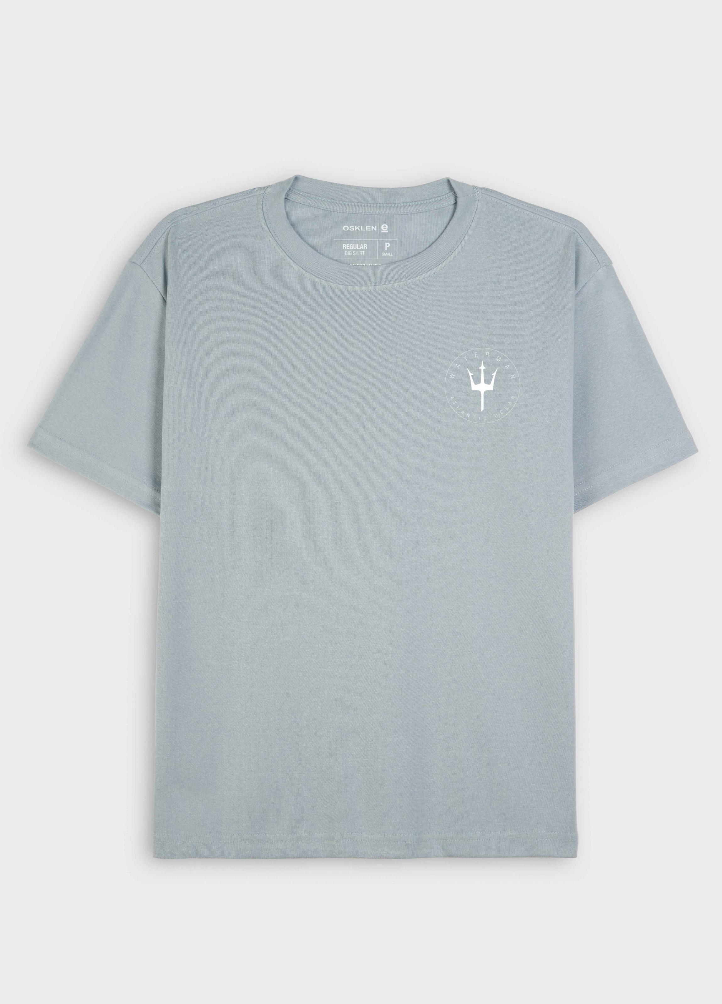 Big shirt masculina em Malhão Pet, E Fabric, 50% algodão certificado 50% poliéster Reciclado (PET), base de modelagem Regular. Ao usar PET reciclado em suas coleções a Osklen evita o descarte no meio ambiente de cerca de 272 mil garrafas PET por ano. Bandeira Re-Design Waste.