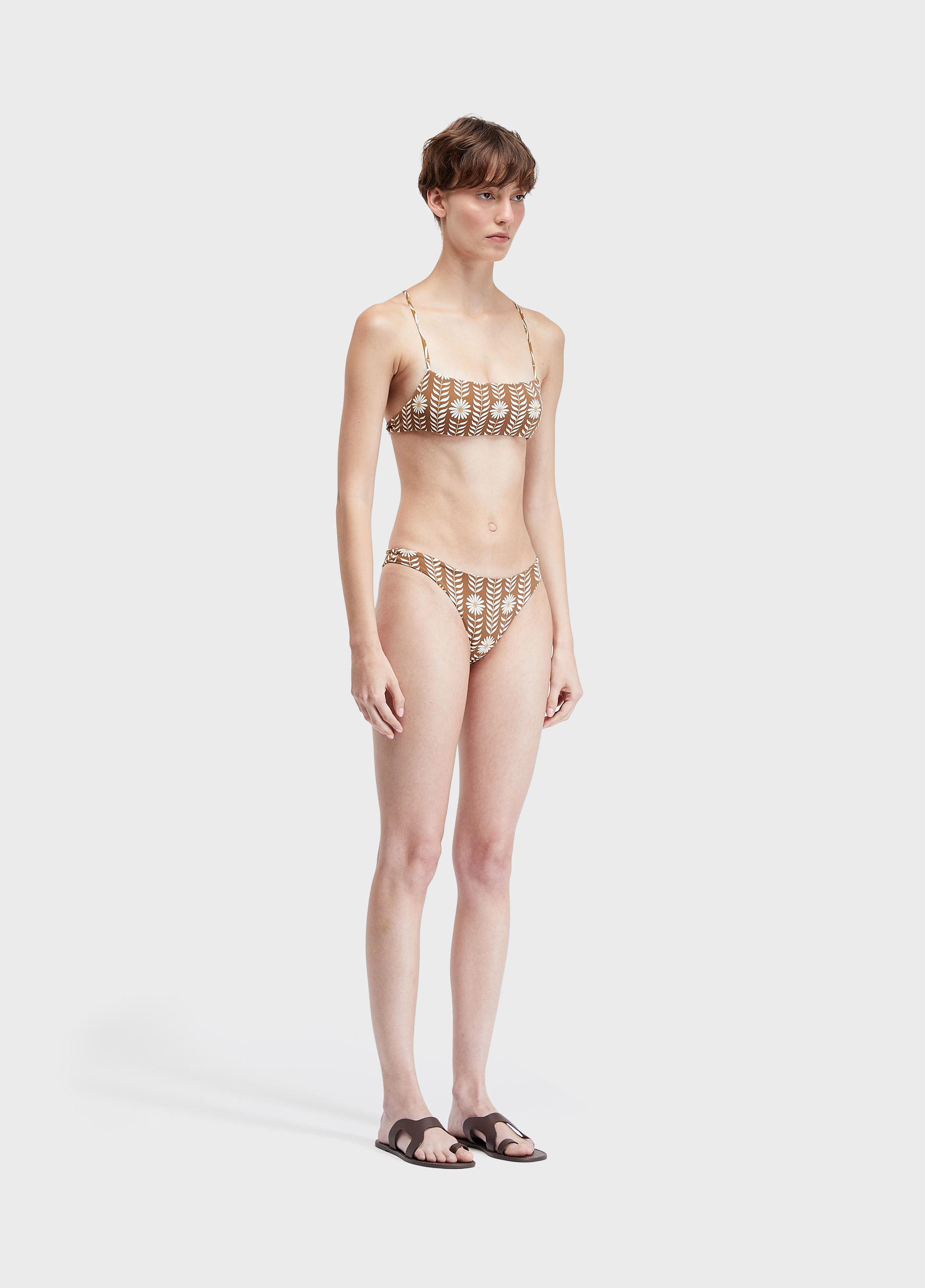 Biquíni desenvolvido na estampa Daisy, com top reto e alças de rolotê fino cruzadas nas costas, calcinha com modelagem inteira asa delta. A peça possui estampa localizada exclusiva Osklen, podendo variar dependendo do corte do tecido. Desenvolvido em malha elástica leve dupla de poliamida biodegradável. Bandeira Regenerate Life. A poliamida biodegradável não possui componentes tóxicos e é isenta de metais pesados comprovados por teste conforme método/norma ASTM E1963 - Standard Guide for Conducting Terrestrial Plant Toxicity Tests. O processo de fabricação do fio é feito em um ciclo fechado de água, sendo 100% tratada e reutilizada. Além disso, após o uso excessivo do produto e quando for descartado, se decompõem no aterro sanitário em m?dia de 3 anos, enquanto a Poliamida Tradicional leva em torno de 50 anos, comprovado pela norma ASTM D5511 - Standard Test Method for Determining Anaerobic Biodegradation of Plastic Materials Under High-Solids Anaerobic-Digestion Conditions.