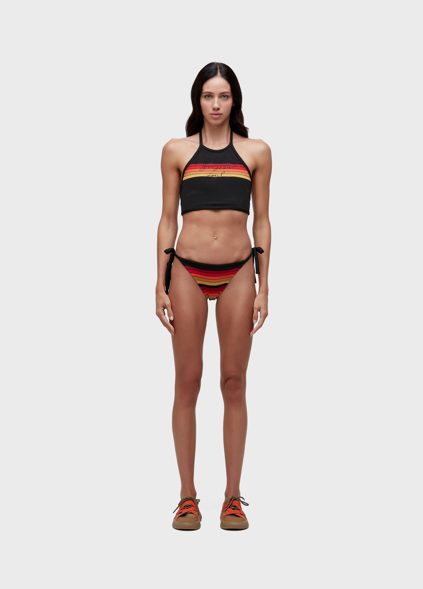 Biquíni de tricot com top frente única, com amarração nas costas, e calcinha de lacinho. Bordado Brazilian Soul no top. Assinatura exclusiva da Osklen. Forro em malha elástica leve.