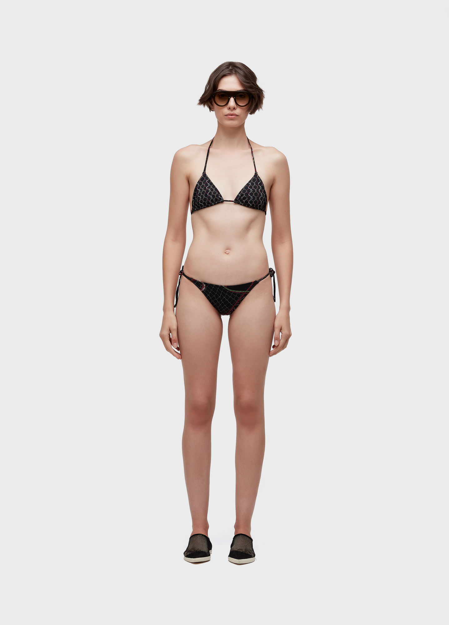 Biquíni desenvolvido na estampa Nós, com top no modelo curtininha e calcinha de lacinho. Rolotês ajustáveis. Estampa exclusiva da Osklen. A estampa pode sofrer alteração, dependendo do corte do tecido. Desenvolvido em malha elástica dupla com proteção UV50+.