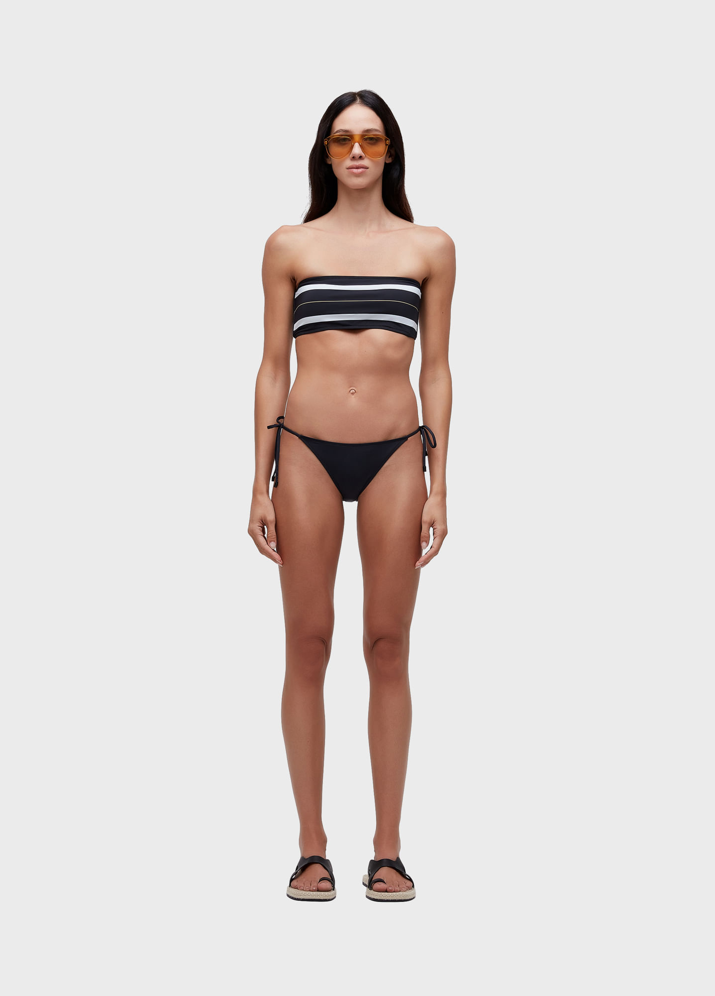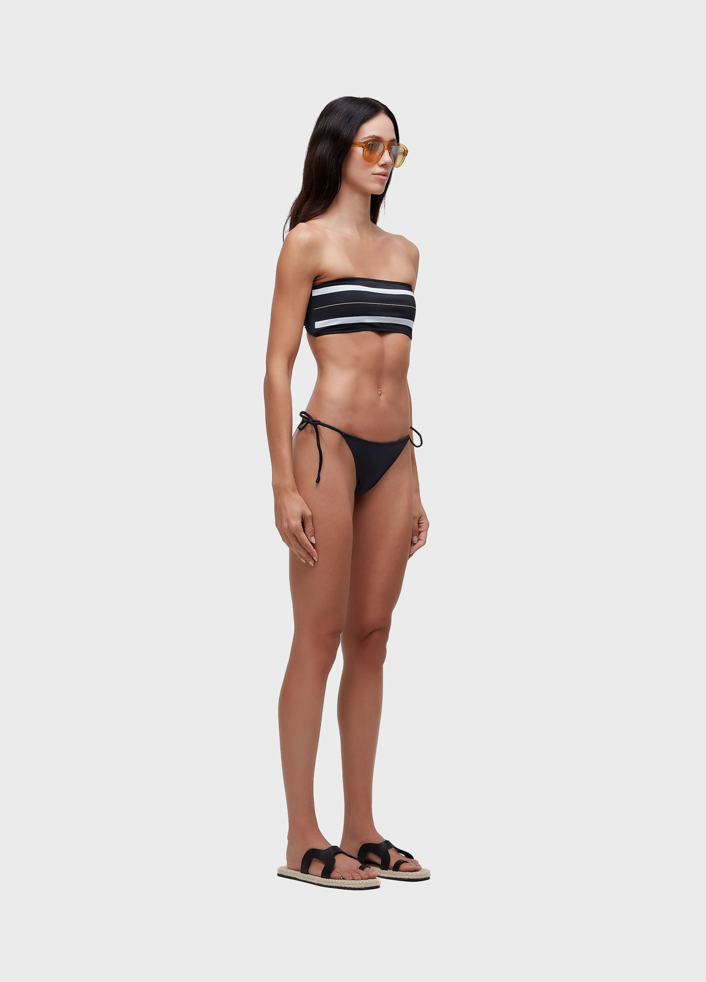 Biquíni com top em modelagem bandeau e calcinha de lacinho. Estampa Pranchão localizada no top e calcinha preta com ponteiras personalizadas. O top possui fechamento nas costas com fecho personalizado. Desenvolvido em malha elástica leve dupla de poliamida biodegradável. Bandeira Regenerate Life. A poliamida biodegradável não possui componentes tóxicos e é isenta de metais pesados comprovados por teste conforme método/norma ASTM E1963 - Standard Guide for Conducting Terrestrial Plant Toxicity Tests. O processo de fabricação do fio é feito em um ciclo fechado de água, sendo 100% tratada e reutilizada. Além disso, após o uso excessivo do produto e quando for descartado, se decompõem no aterro sanitário em média de 3 anos, enquanto a Poliamida Tradicional leva em torno de 50 anos, comprovado pela norma ASTM D5511 - Standard Test Method for Determining Anaerobic Biodegradation of Plastic Materials Under High-Solids Anaerobic-Digestion Conditions.