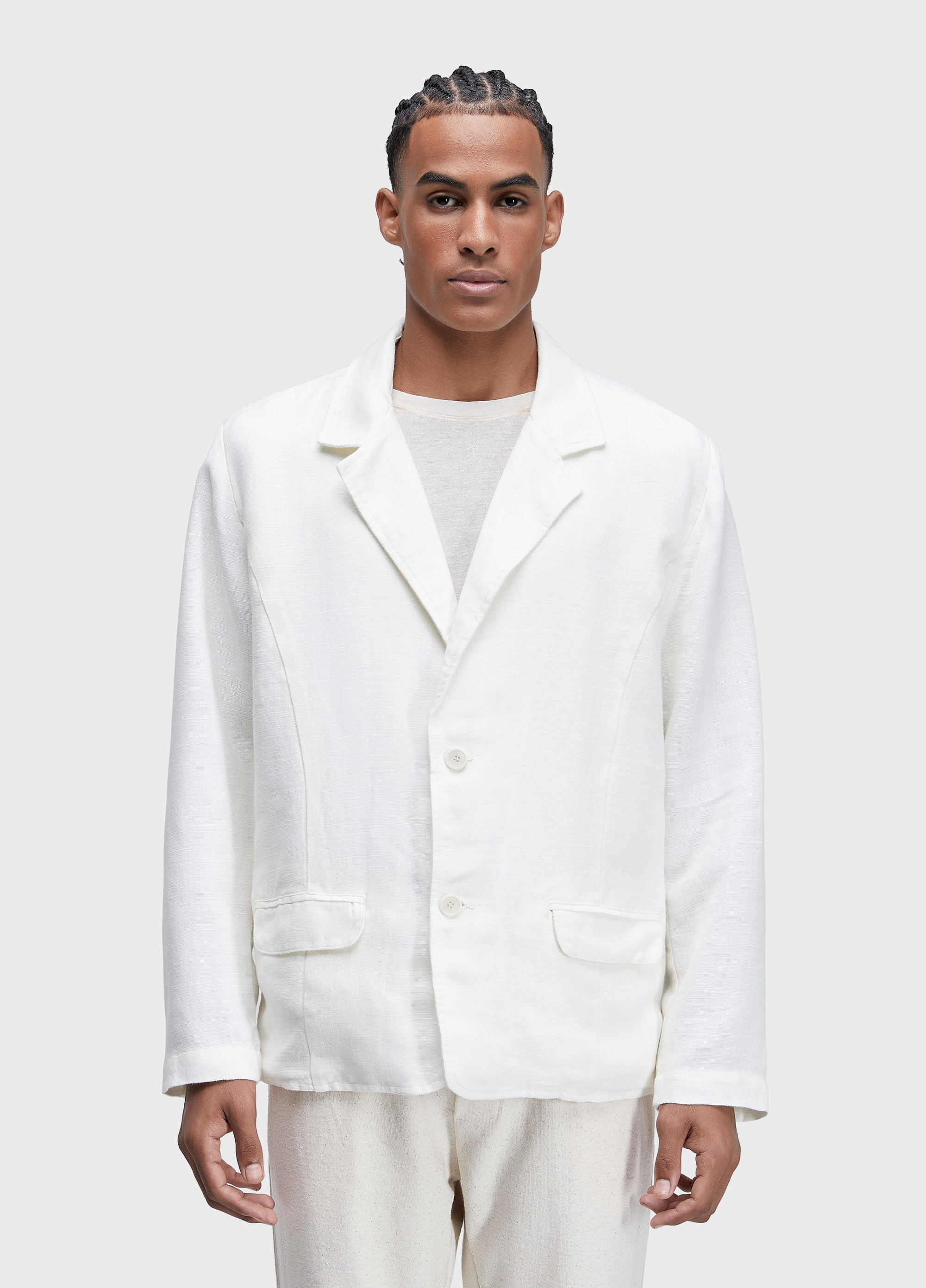 Blazer com modelagem reta e comprimento mais curto. Peça feita em 100% linho.