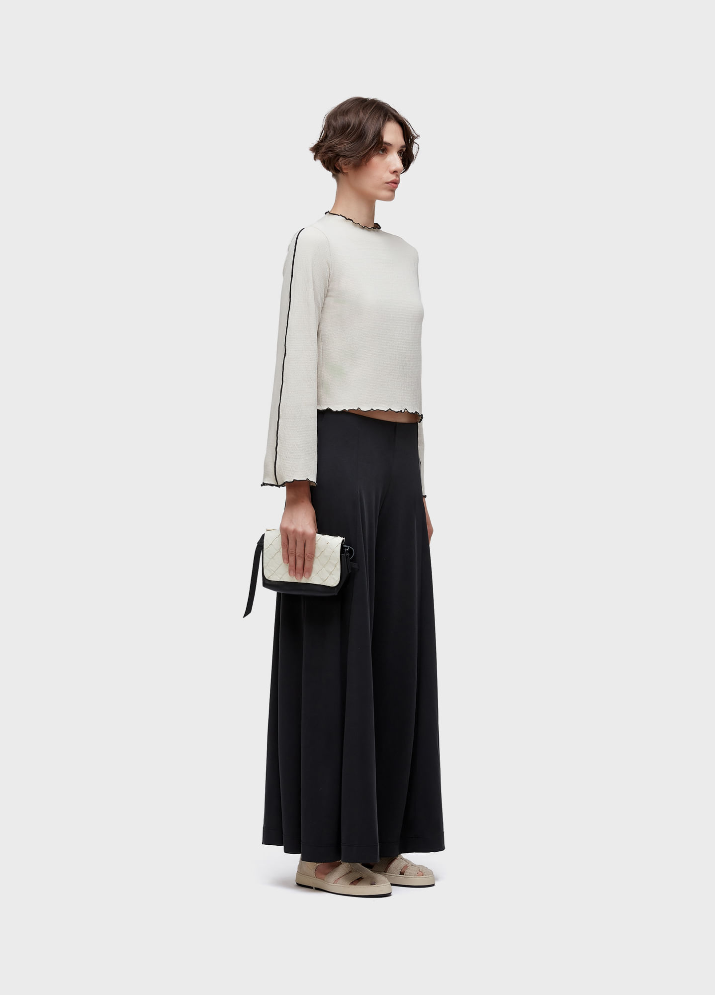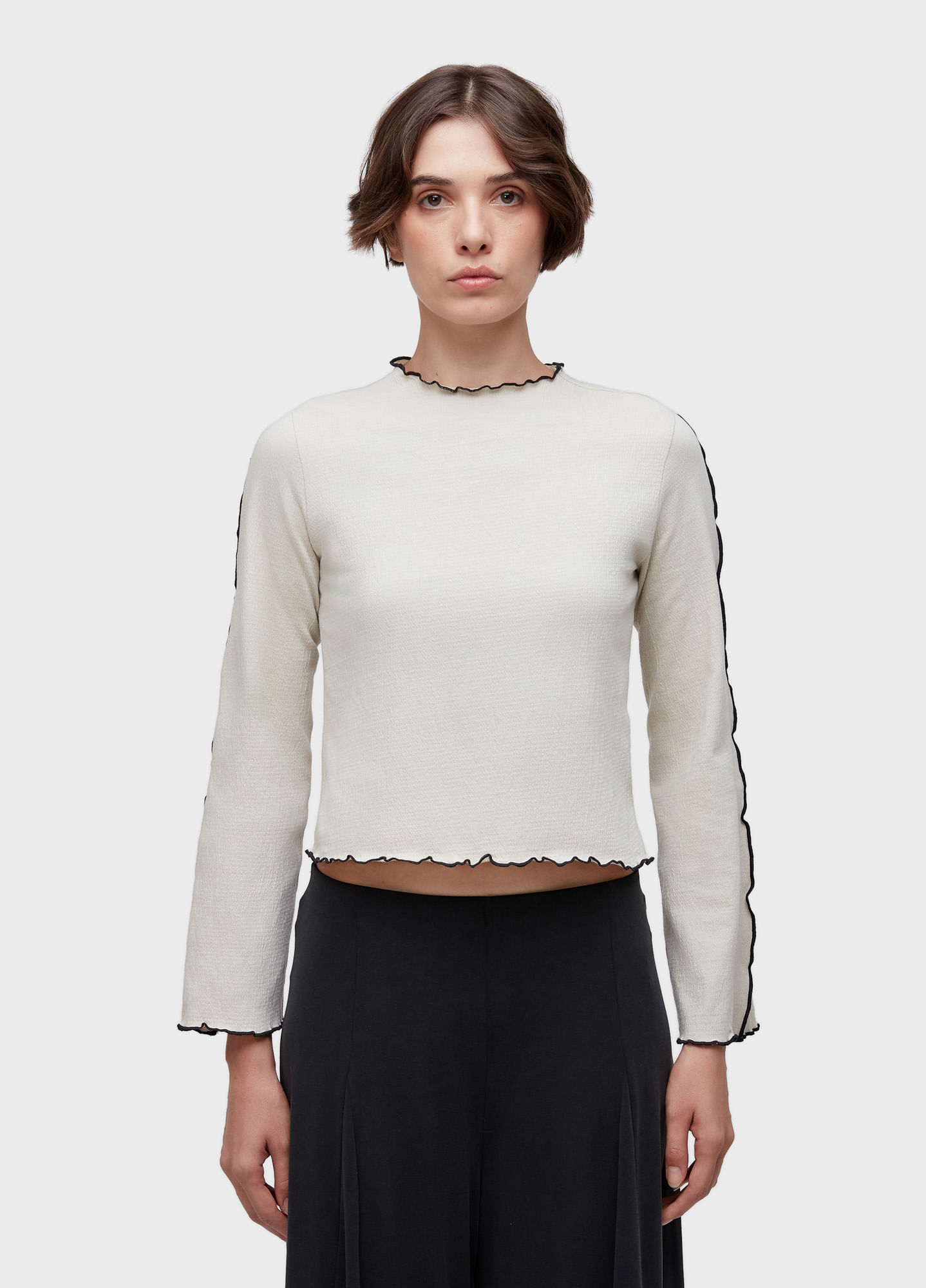 BLUSA DE MANGA LONGA FEITA EM MALHA DE ANARRUGA E ACABAMENTO CONTRASTANTE NAS EXTREMIDADES; MODELAGEM FIT E MANGAS AMPLAS; PEÇA AMACIADA COM MENTA ORGÂNICA. BANDEIRA: RL: ORGANIC MINT WASH.
