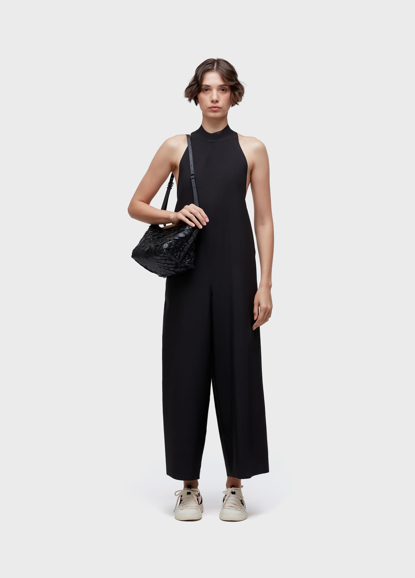 Bolsa média de linhas retas, com alça de ombro de couro bovino regulável, bolso interno e envelope removível. A bolsa tem fecho de metal dourado com imã e é feita em couro de pirarucu, com forro de camurça de porco. Produto Regenerete Life pois a pele do peixe Pirarucu usada pela Osklen atende às normas rigorosas de Manejo Sustentável e protegem a espécie do risco de extinção, além da própria floresta já que não envolve desmatamento.