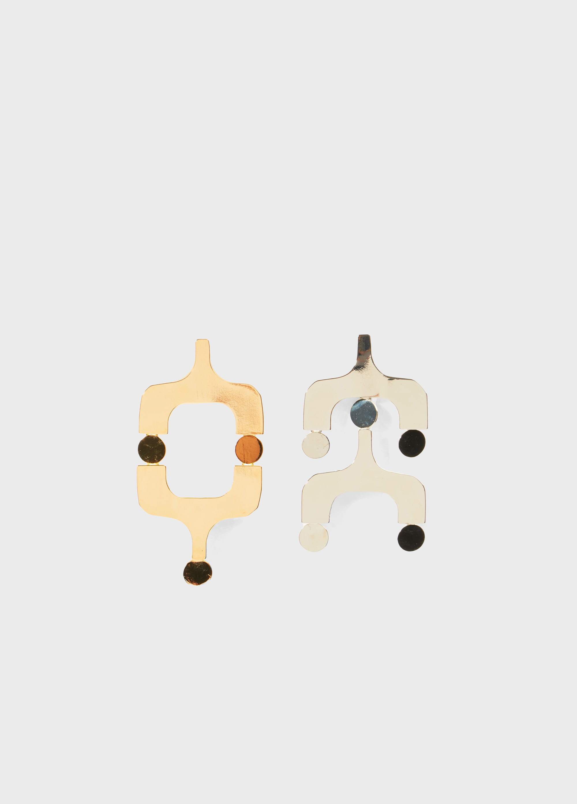 Par de brincos assimétricos com inspiração no calçadão de ipanema. São bicolores, um lado prata e outro dourado.