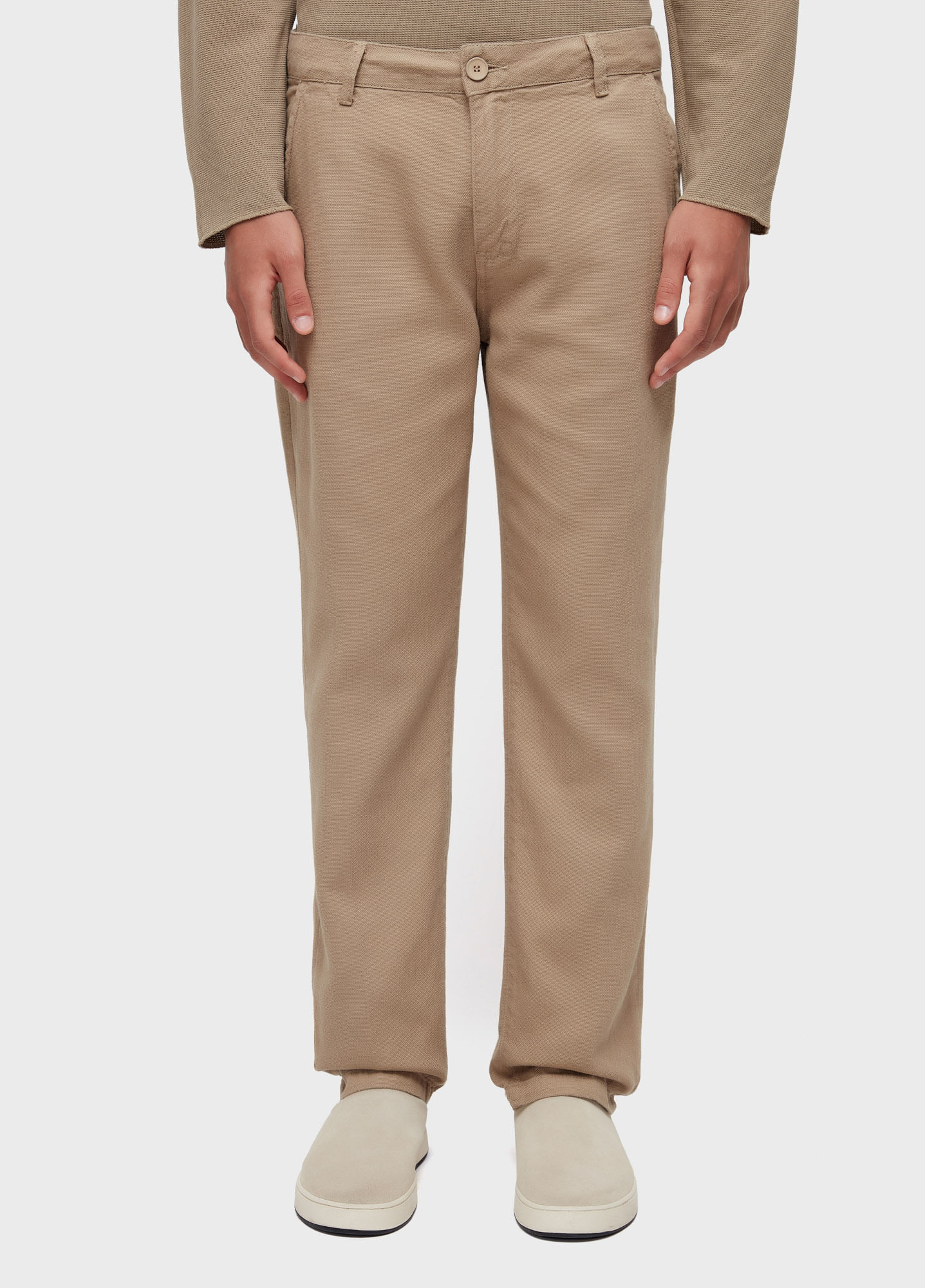Calça alfaiataria com modelagem slim, feita em algodão texturizado.