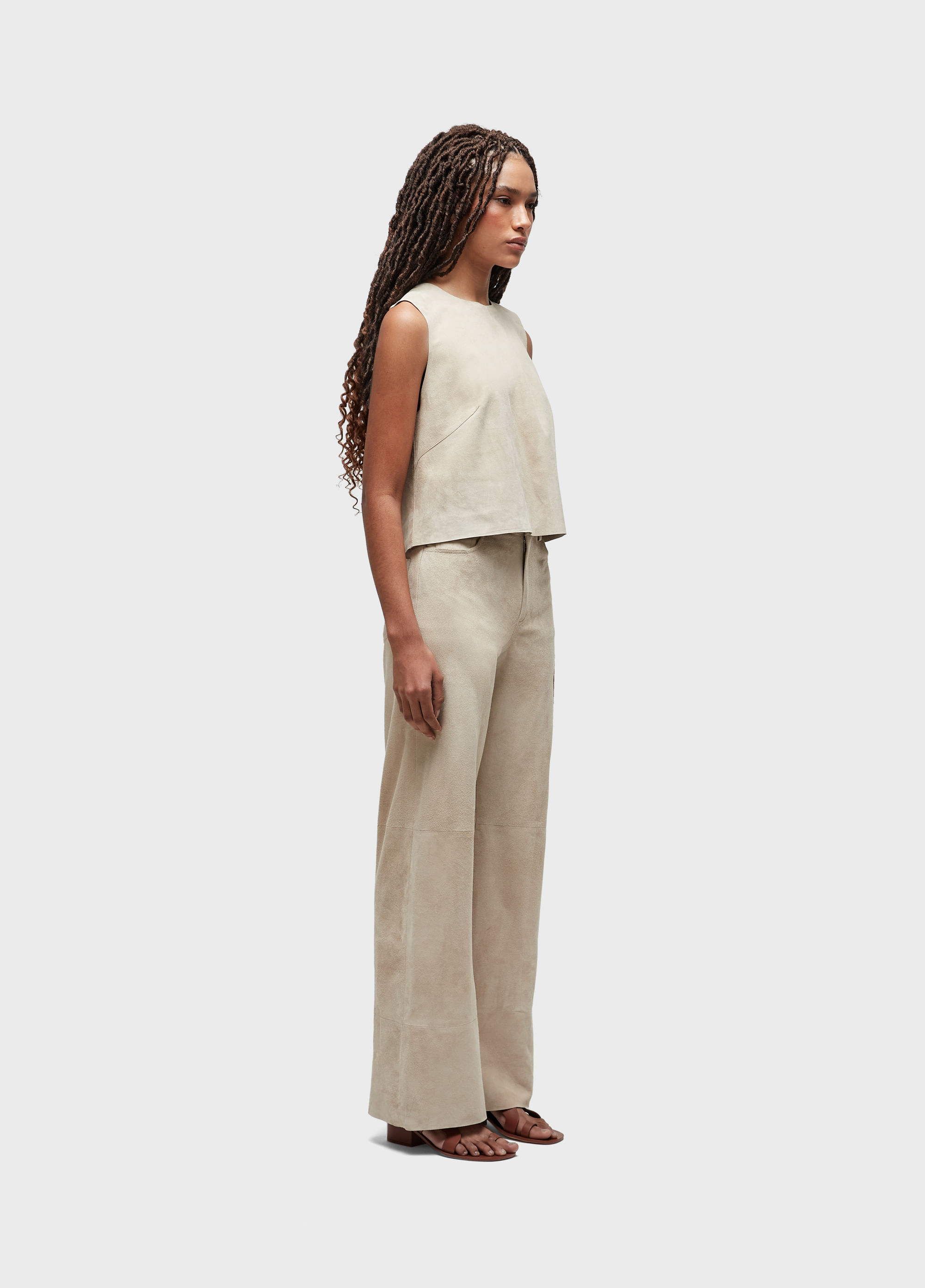 Calca feminina, chamois 100% leather, five pockets, reta