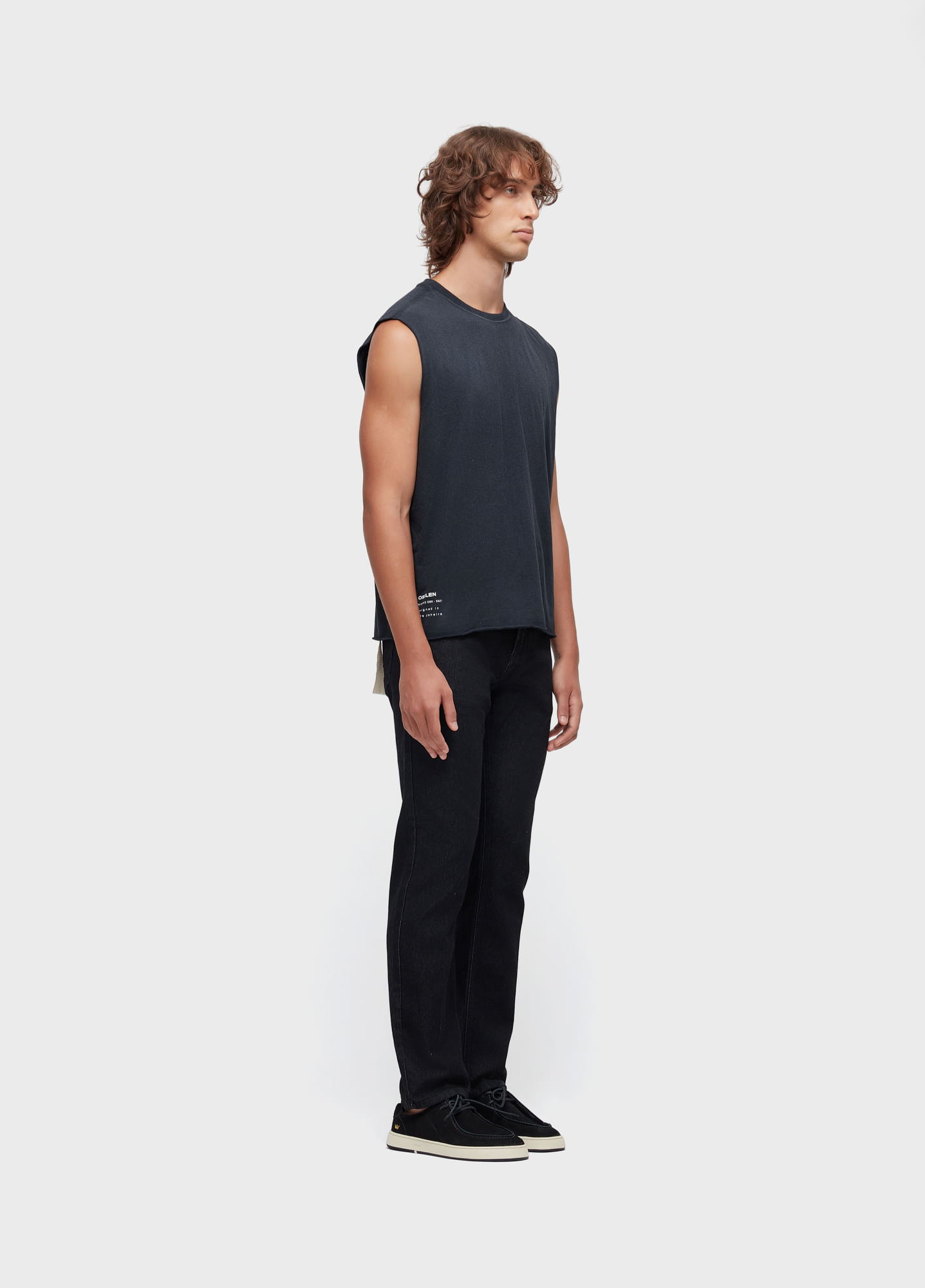 Modelagem Fit, ajustada ao corpo. Tecido denim com construção de malha. Processos de lavagem manuais, feitos peça a peça.