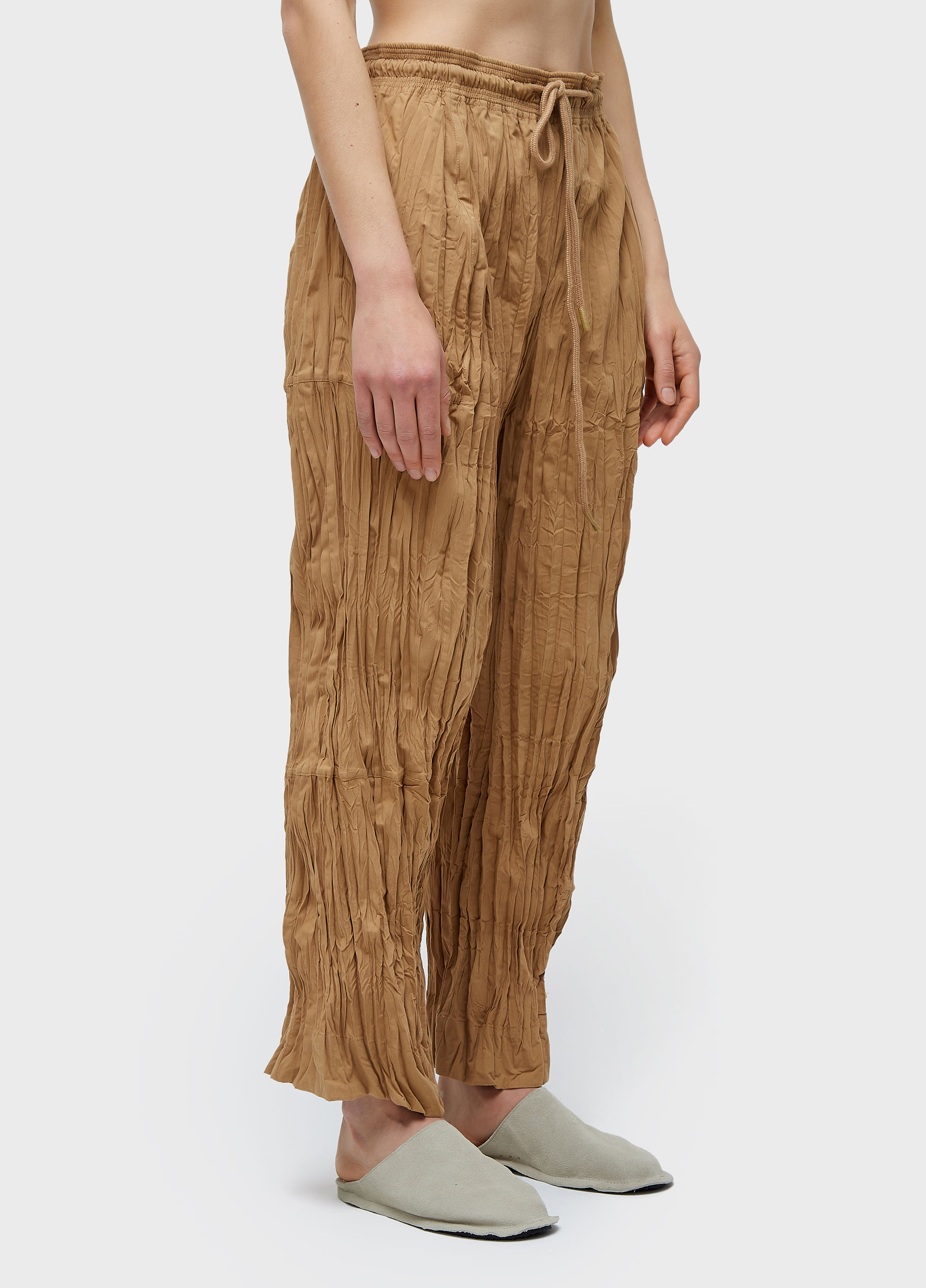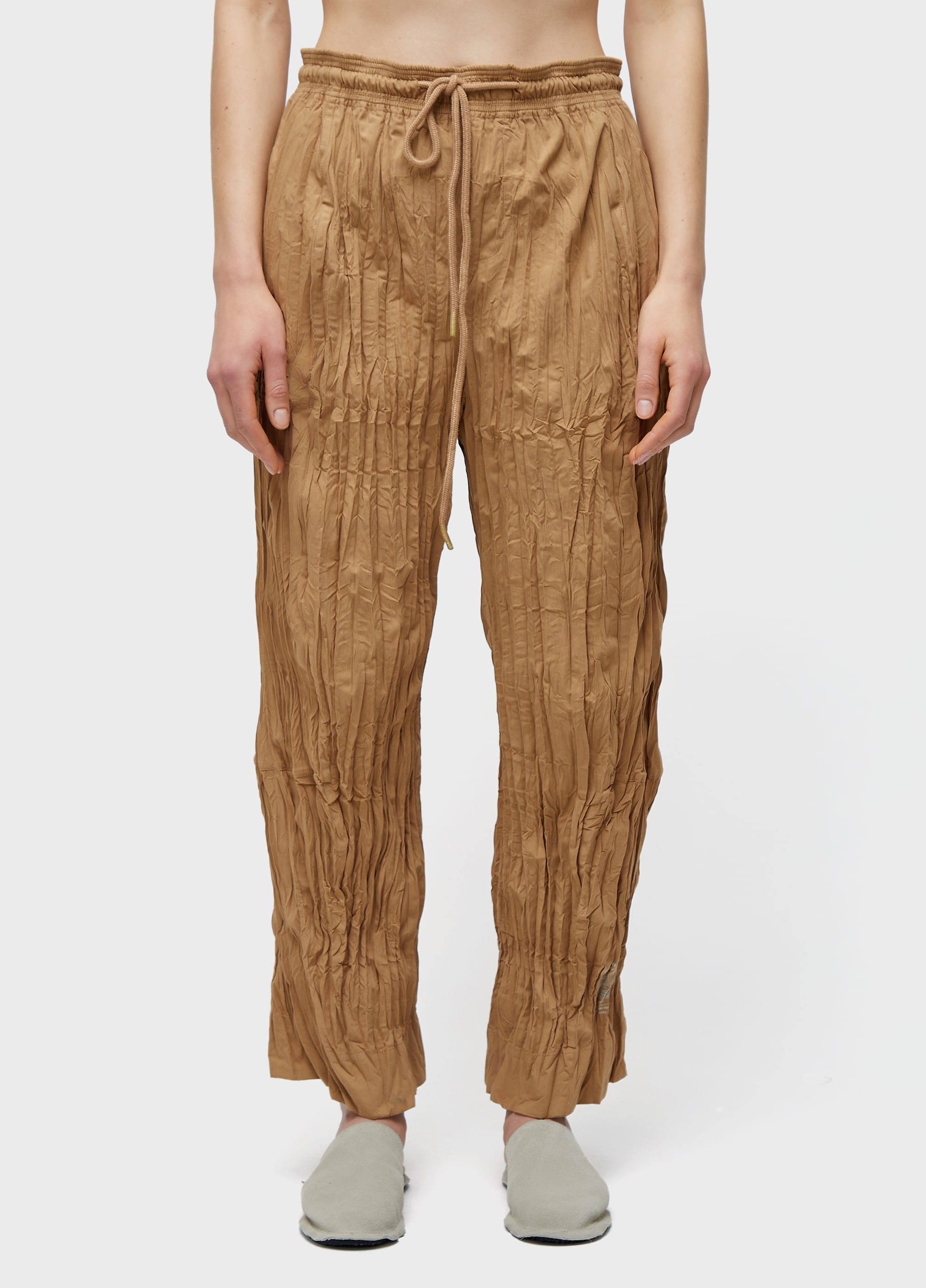 Calca feminina, tricoline amassado, jogging com recorte joelheira, cos de elastico e cadarco, linha travel