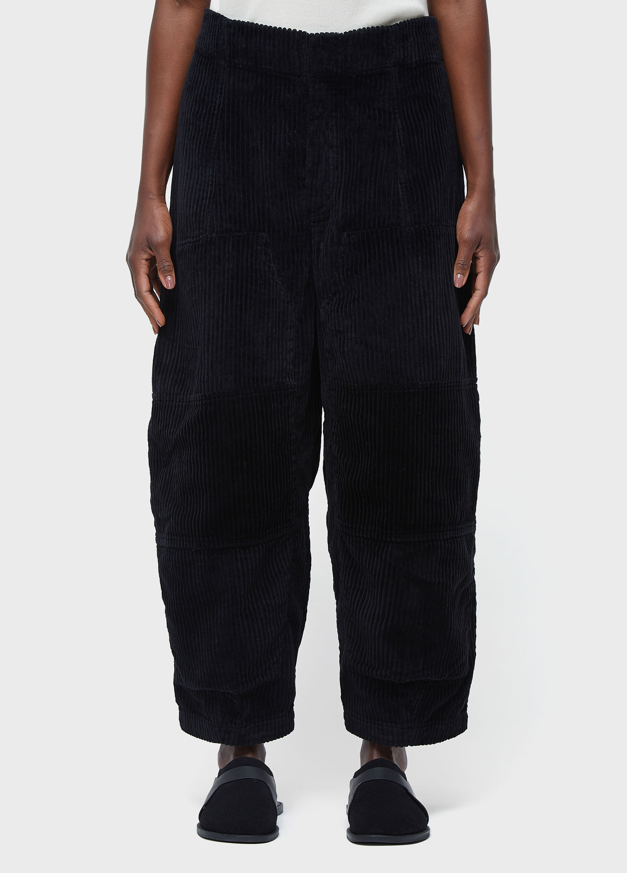 CALCA FEIMININA; MODELAGEM AMPLA; CINTURA MEDIA; PERNAS AFUNILADAS COM RECORTES; FEITA EM VELUDO COTELE.