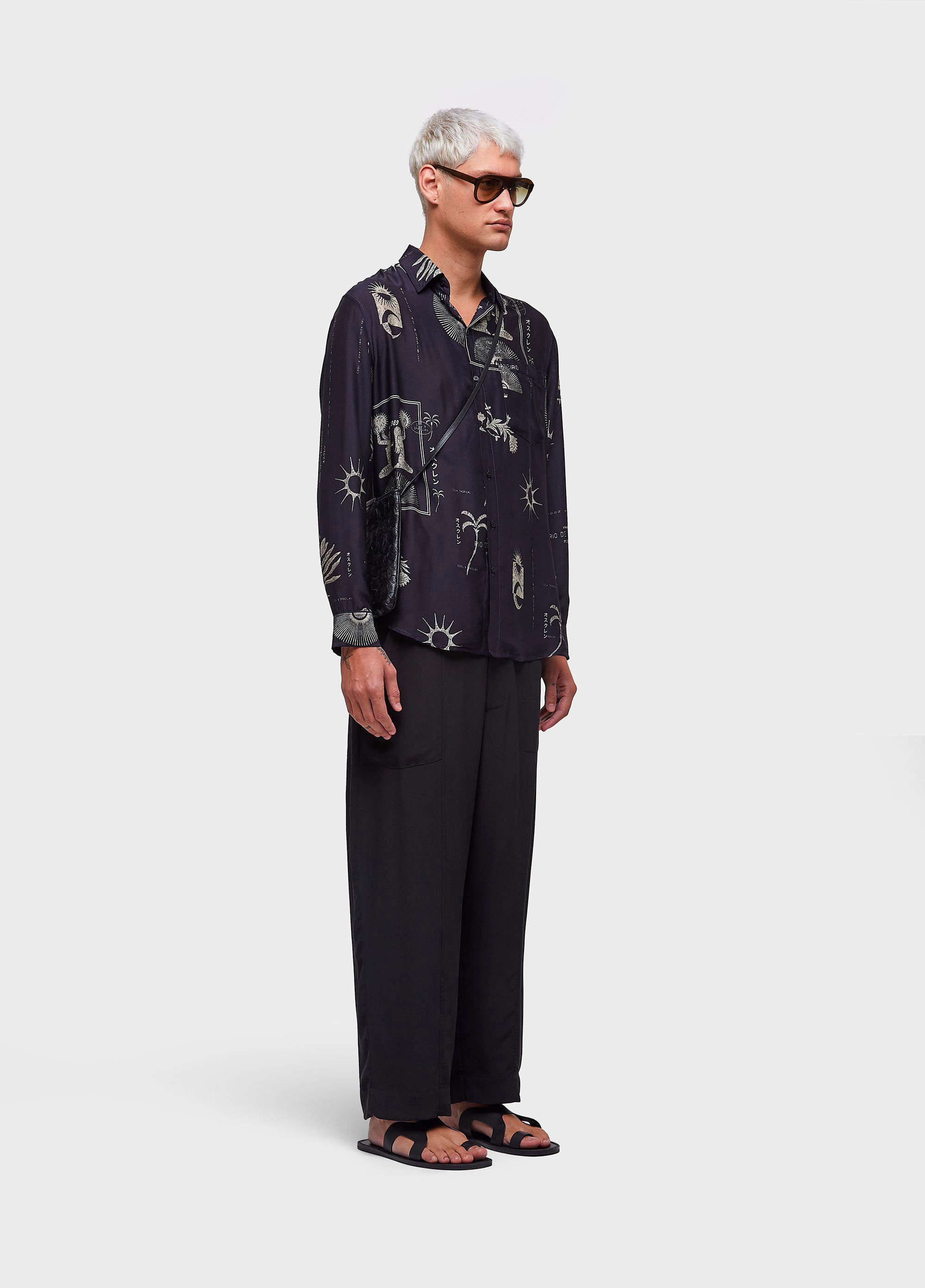 Camisa com modelagem levemente ampla, feita em estampa exclusiva Osklen, em tecido seda mista.