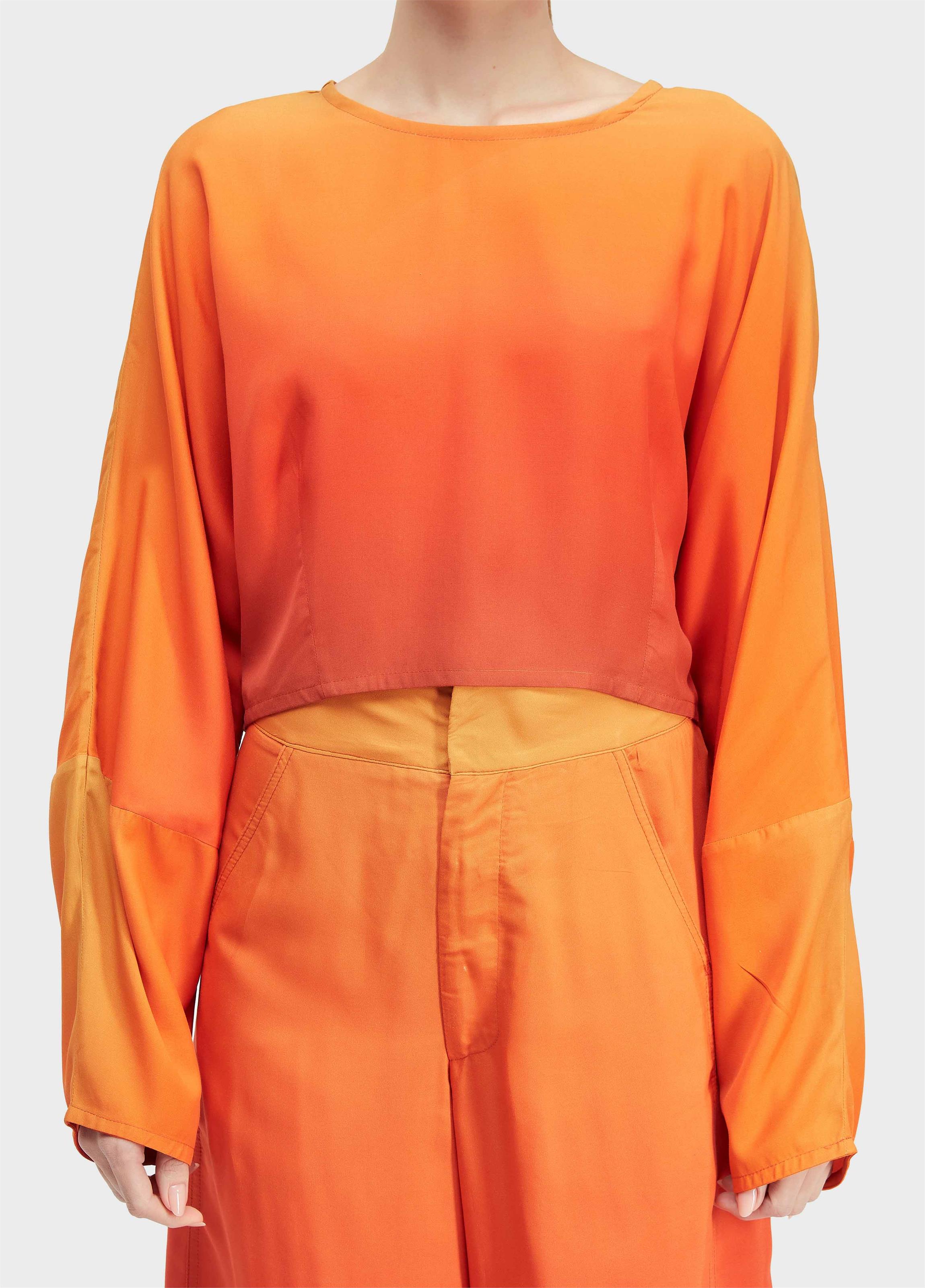 Camisa, curta, mangas longas, cotovelo projetado, estampa sunset, linho com viscose