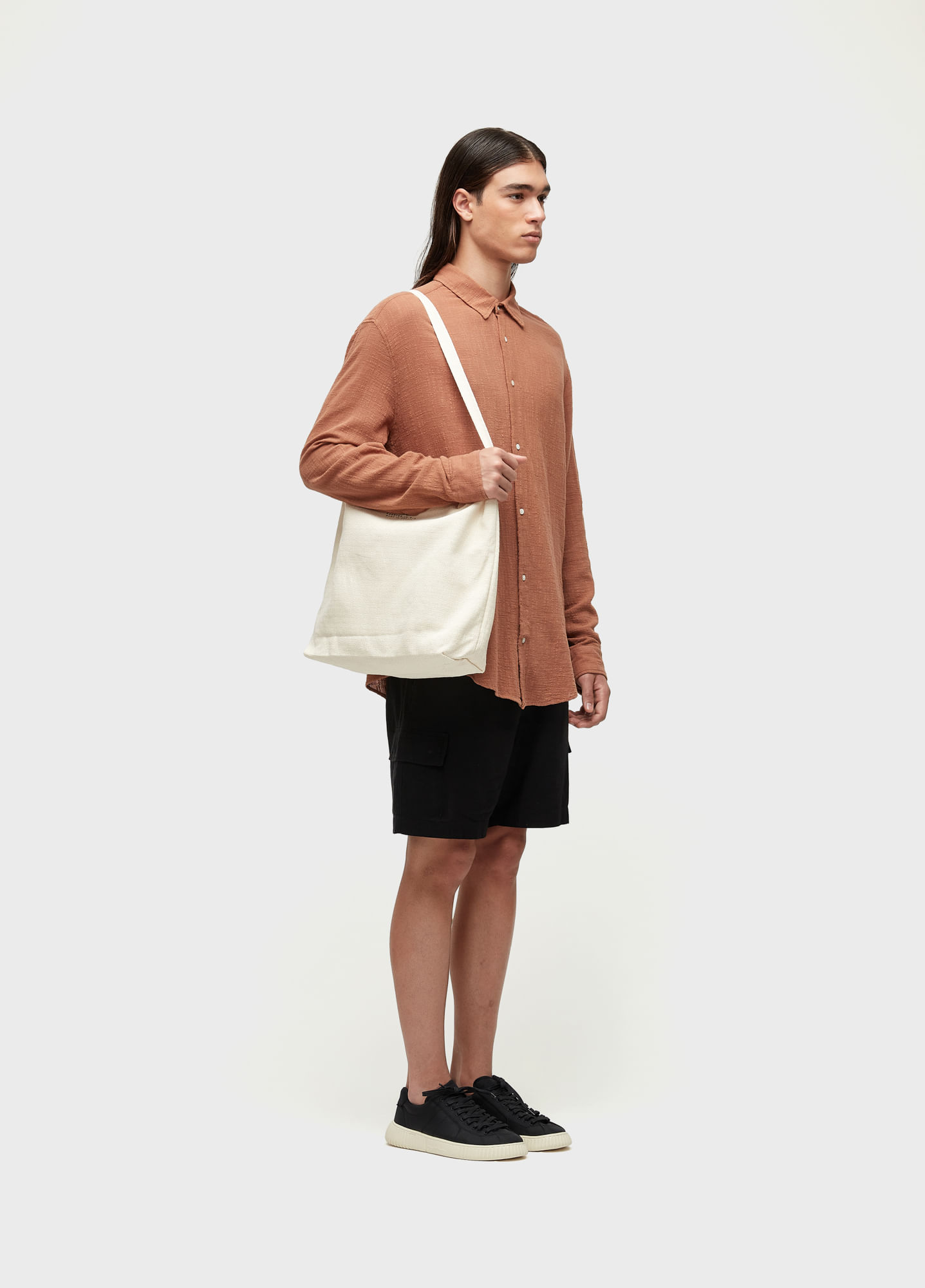 Camisa manga longa com modelagem ampla alongada, feita em algodão texturizado.