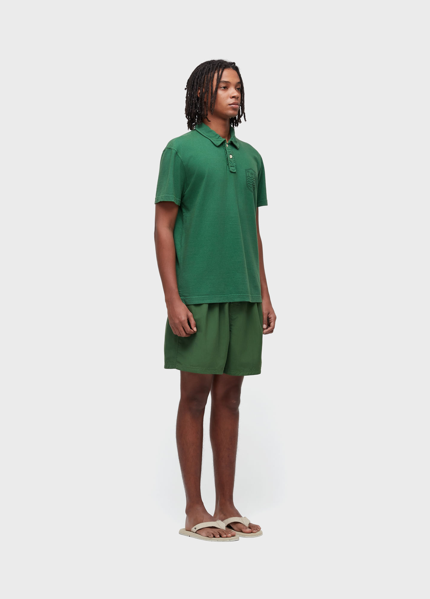Polo masculina com assinatura brasão Osklen no peito. Feita em matéria-prima 100% algodão. Esta peça foi produzida com algodão certificado, produzido a partir de critérios socioambientais e econômicos. Sua produção utiliza energia renovável, reduz o consumo de água e fomenta a sustentabilidade das cadeias produtivas brasileiras. O amaciamento das fibras é feito à base do óleo essencial da menta orgânica, cultivada em hortas no sul do Brasil, Além de colaborar para a redução dos impactos ambientais, as hortas fazem parte de um projeto de responsabilidade social, que promove a recuperação e ressocialização de dependentes químicos. Bandeiras Regenerate Life e e Respect Our People.