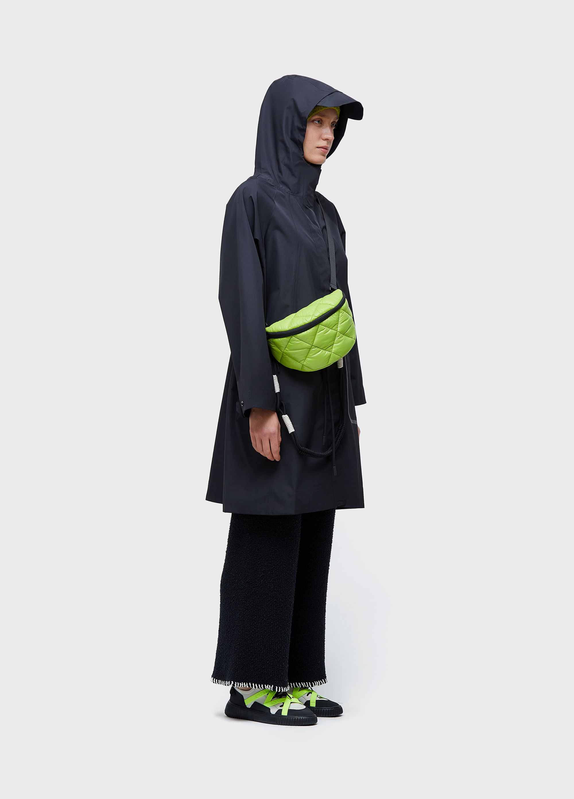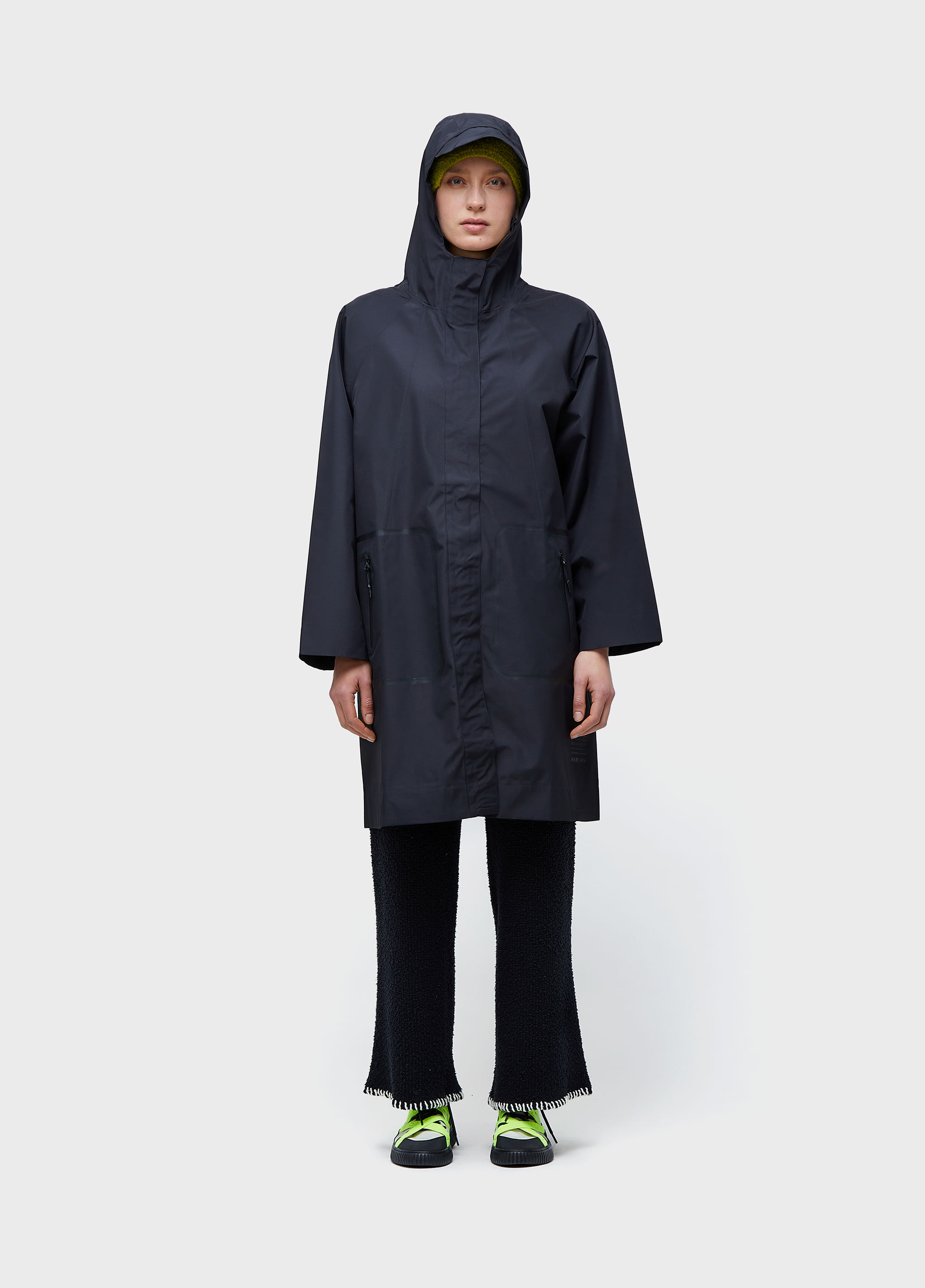 Casaco feminino, rain coat, nylon, midi, costuras seladas, waterproof, com capuz