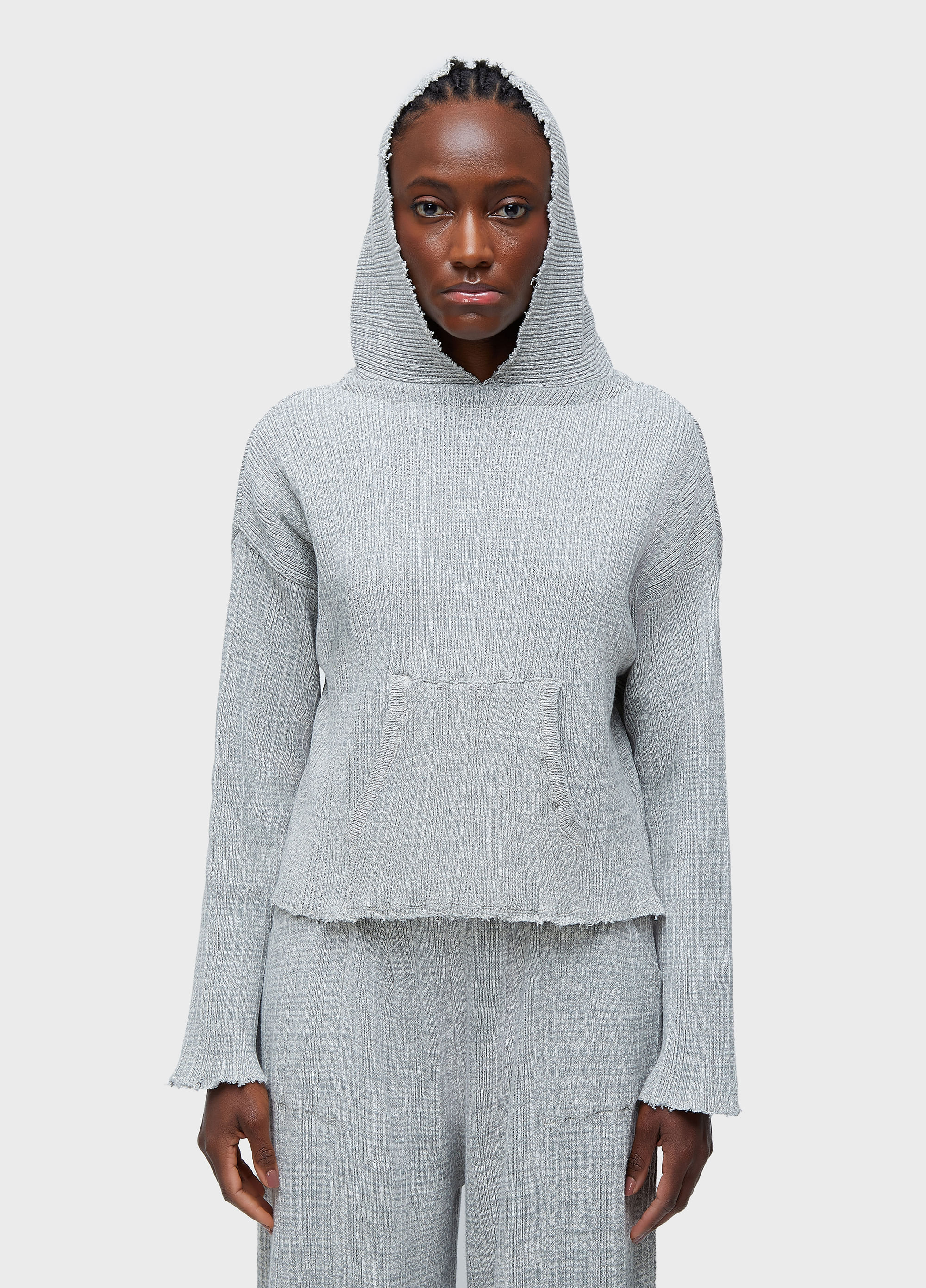 Casaco Tricot Capuz Frayed