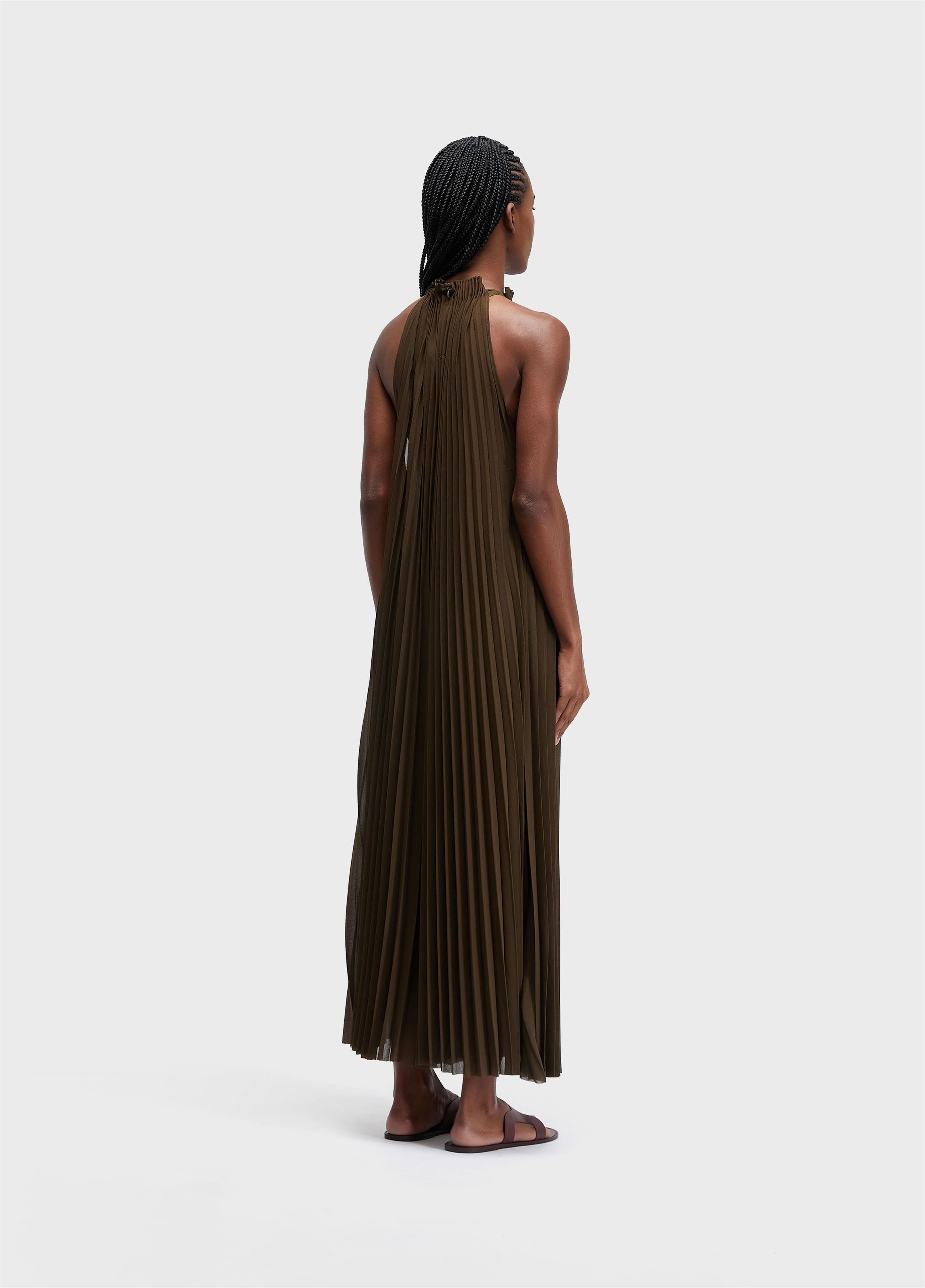 macacão feminino modelo sleeveless com cava raglan; chiffon plissado; modelagem ampla e caimento fluido; fechamento costas com zíper
