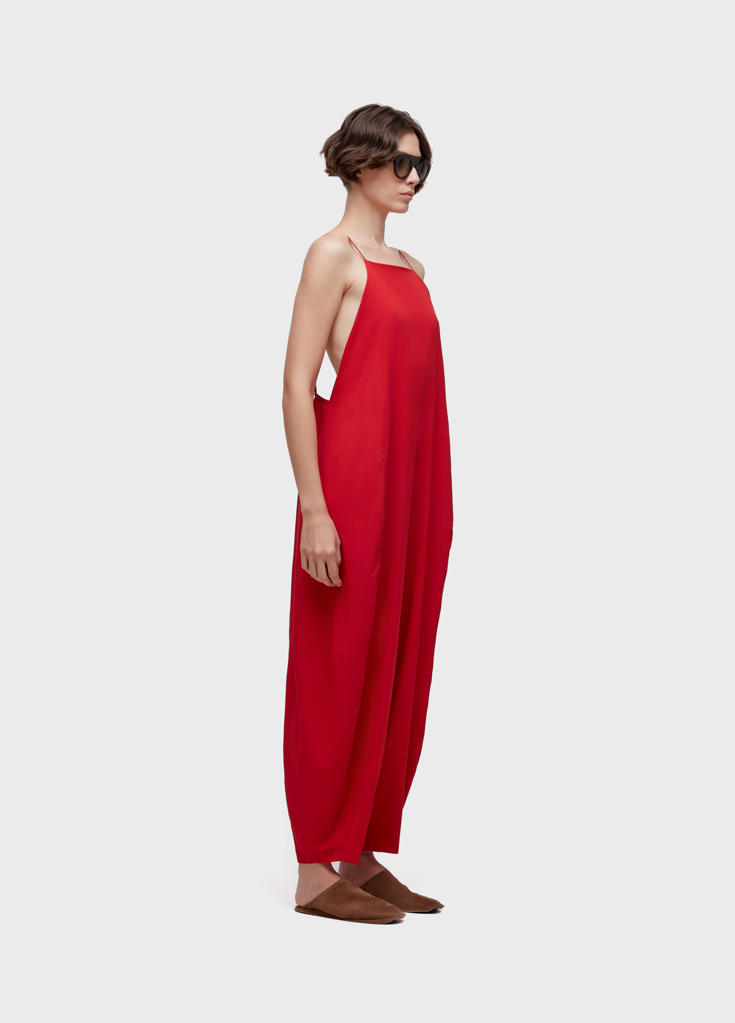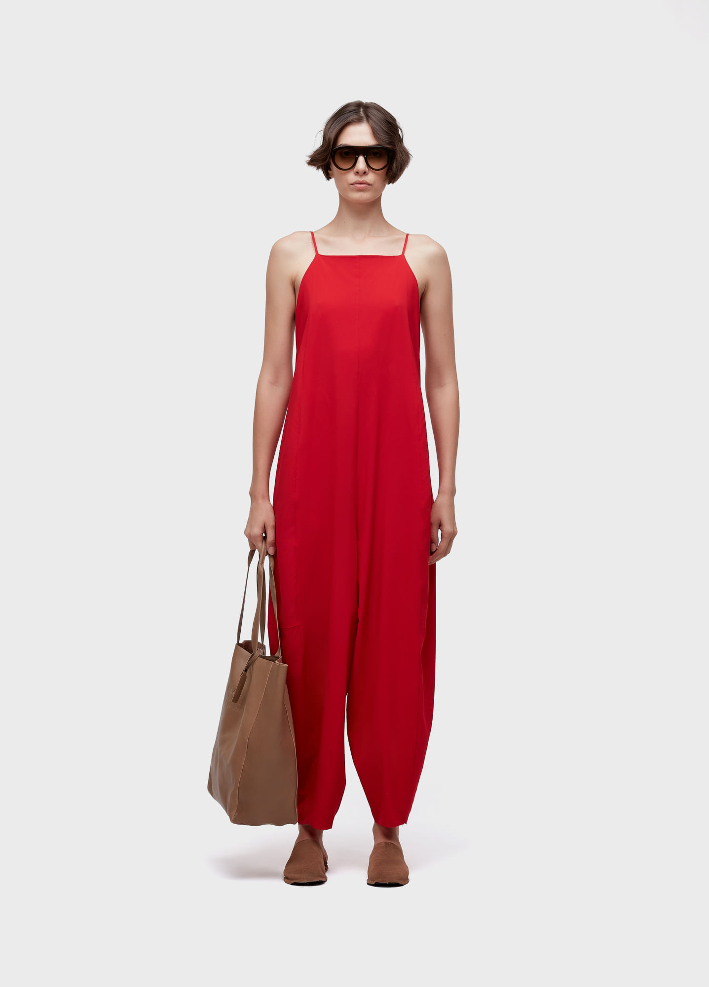 Macacao, alcas finas, decote reto, shape baloon, minimal, superlight