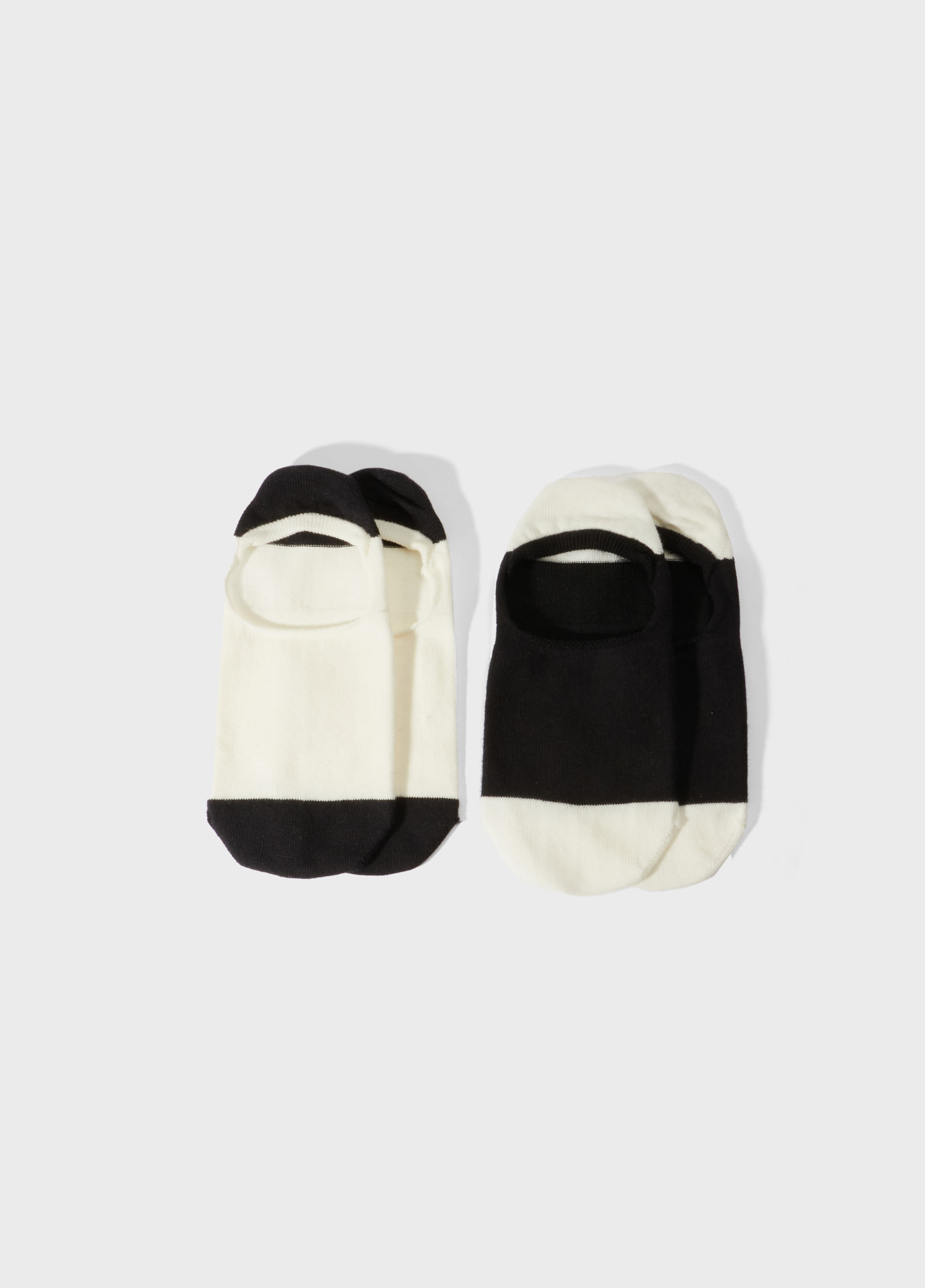 Meia modelo pezinho unissex, feita em 65% algodão, 32% poliamida, 2% elastano e 1% elastodieno. Pack possui um par Preto/Off White e outro Off White/Preto. Assinatura Osklen na base da meia.