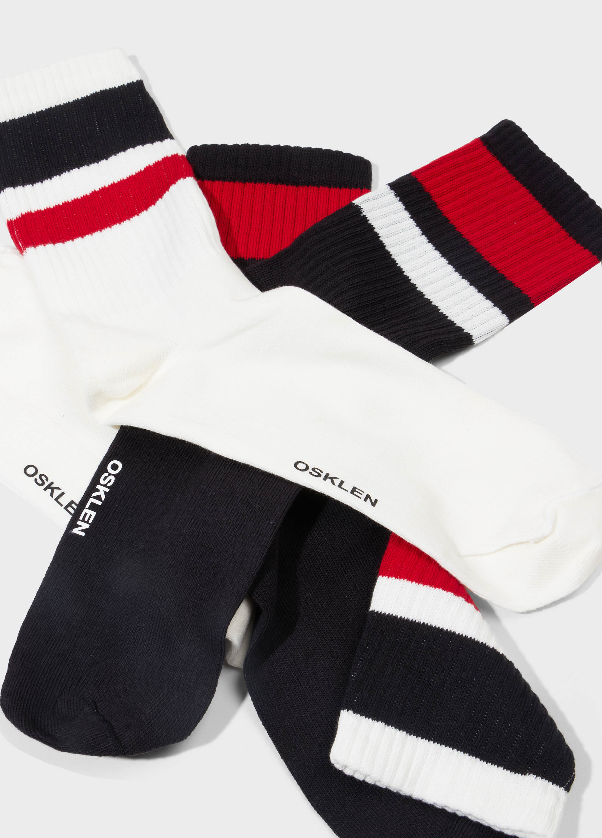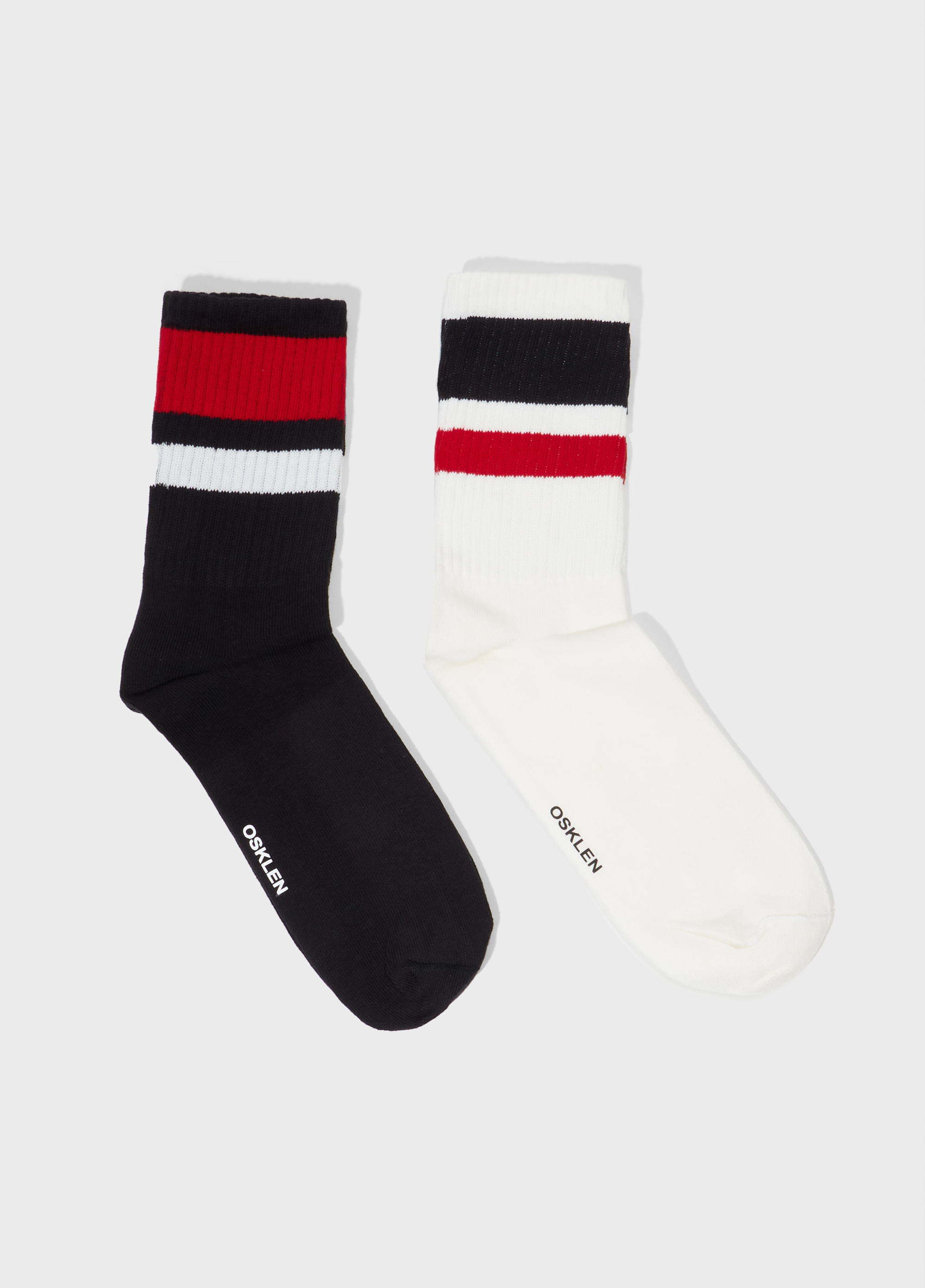Meia cano alto. Desenvolvida em malha de algodão com textura canelada na parte do cano. Detalhe em listrado Riva exclusivo Osklen.