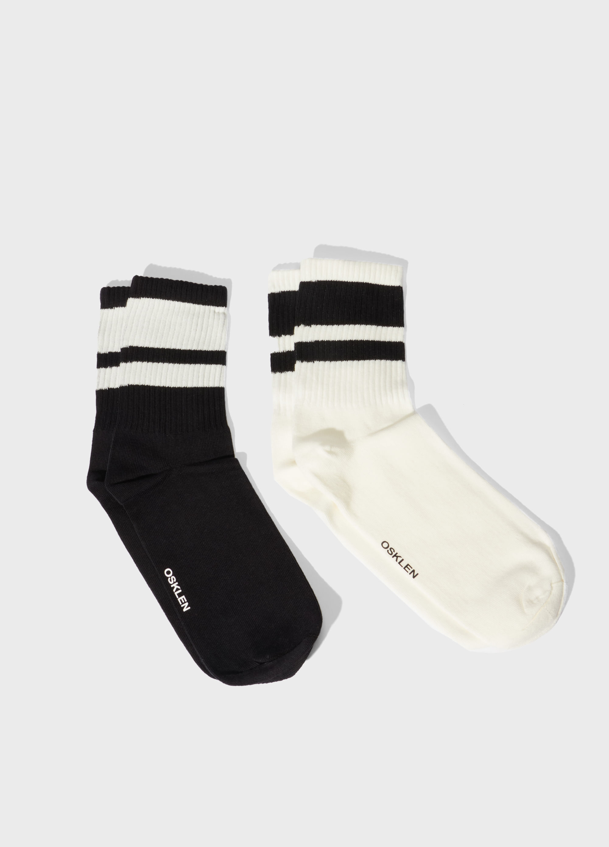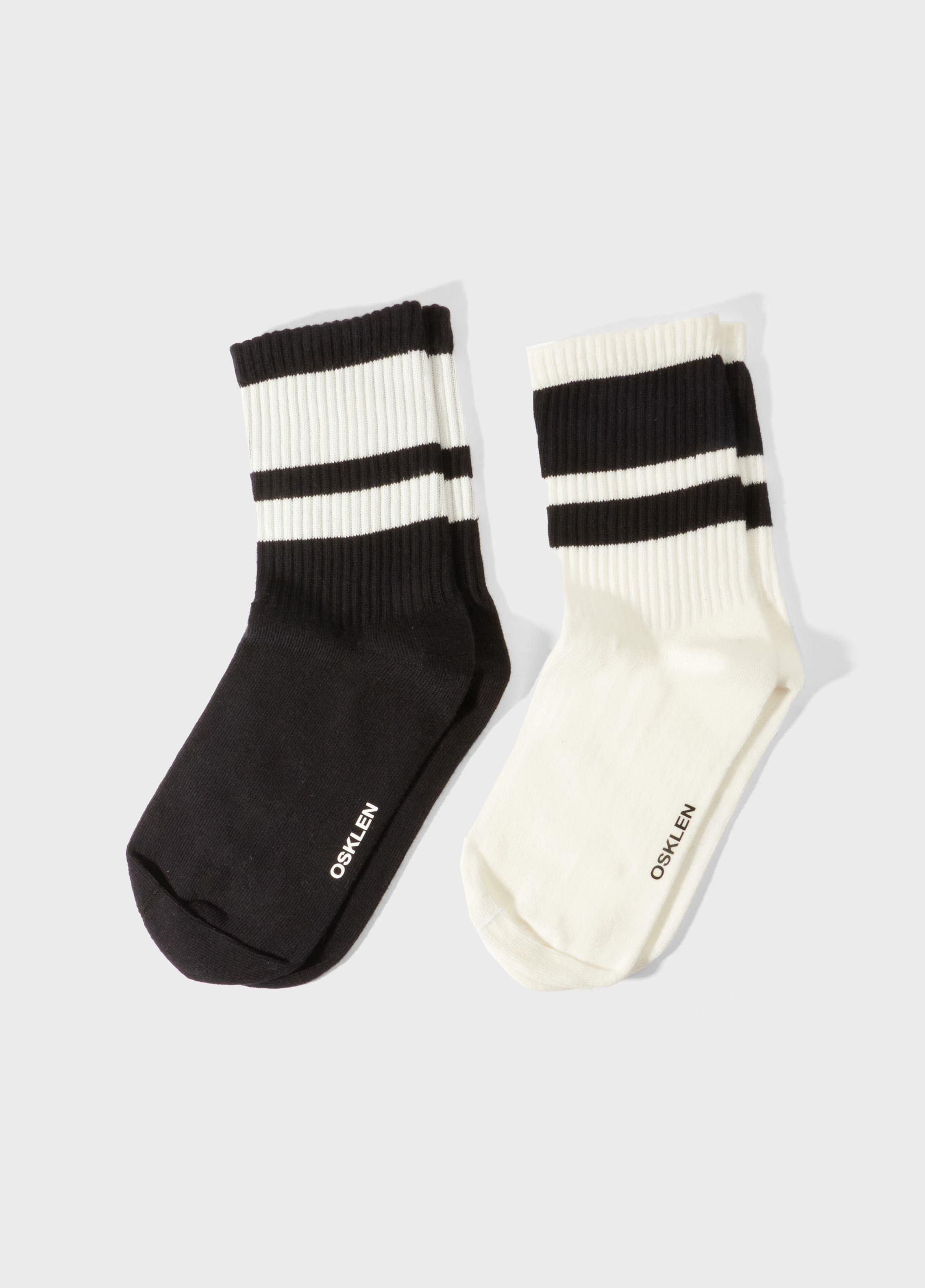 Meia cano alto. Desenvolvida em malha de algodão com textura canelada na parte do cano. Detalhe em listrado Riva exclusivo Osklen.