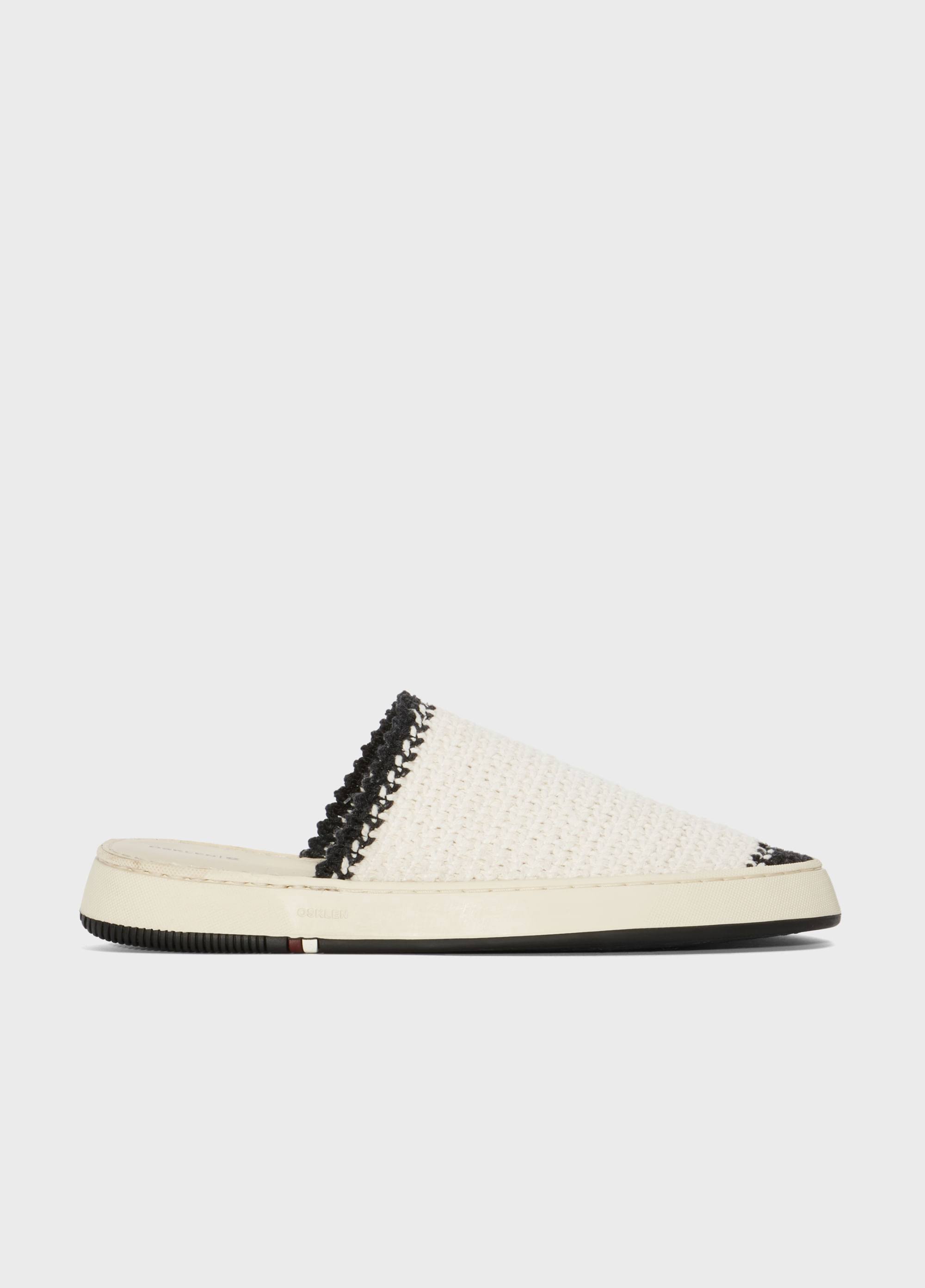 Mule Soho em algodão. Palmilha forrada com couro. Solado Soho de borracha feita com látex natural da Amazônia e resíduos reciclados, design exclusivo Osklen, produzido com no mínimo 10% de material reciclado. Produto Re-Design Waste.