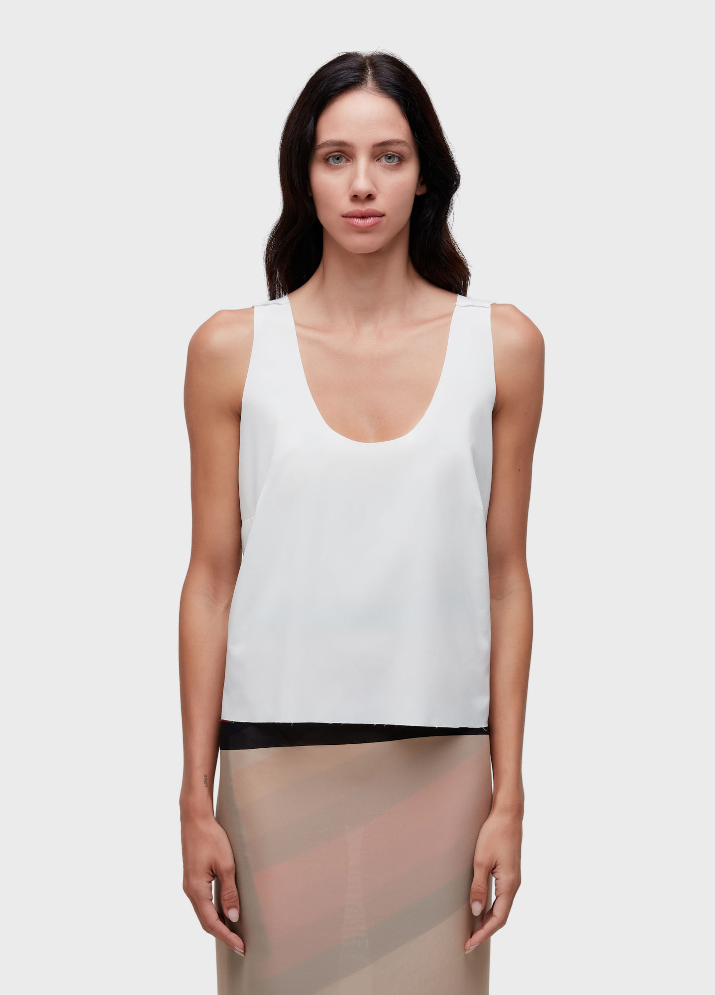 Regata feminina, com decote U e acabamento a fio em superlight. Tecido levíssimo, com toque acetinado e tecnologia Iron Free: a roupa desamassa sozinha durante o uso tornando este produto perfeito para qualquer momento do dia.