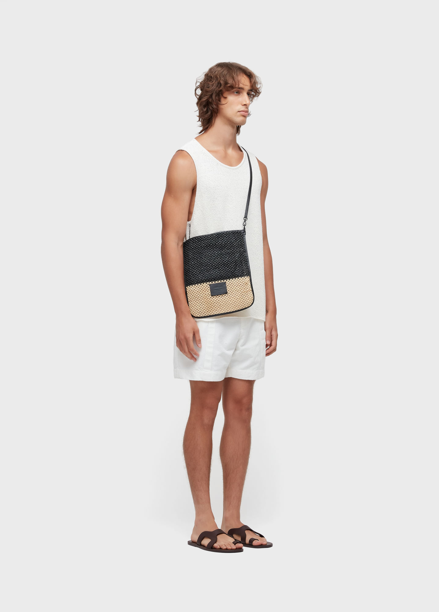 REGATA MASCULINA DE TRICOT. MODELAGEM OVER. ALGODÃO RECICLADO. PEÇA COM DETALHE CONTRASTANTE NAS LATERAIS. REDESIGN WASTE