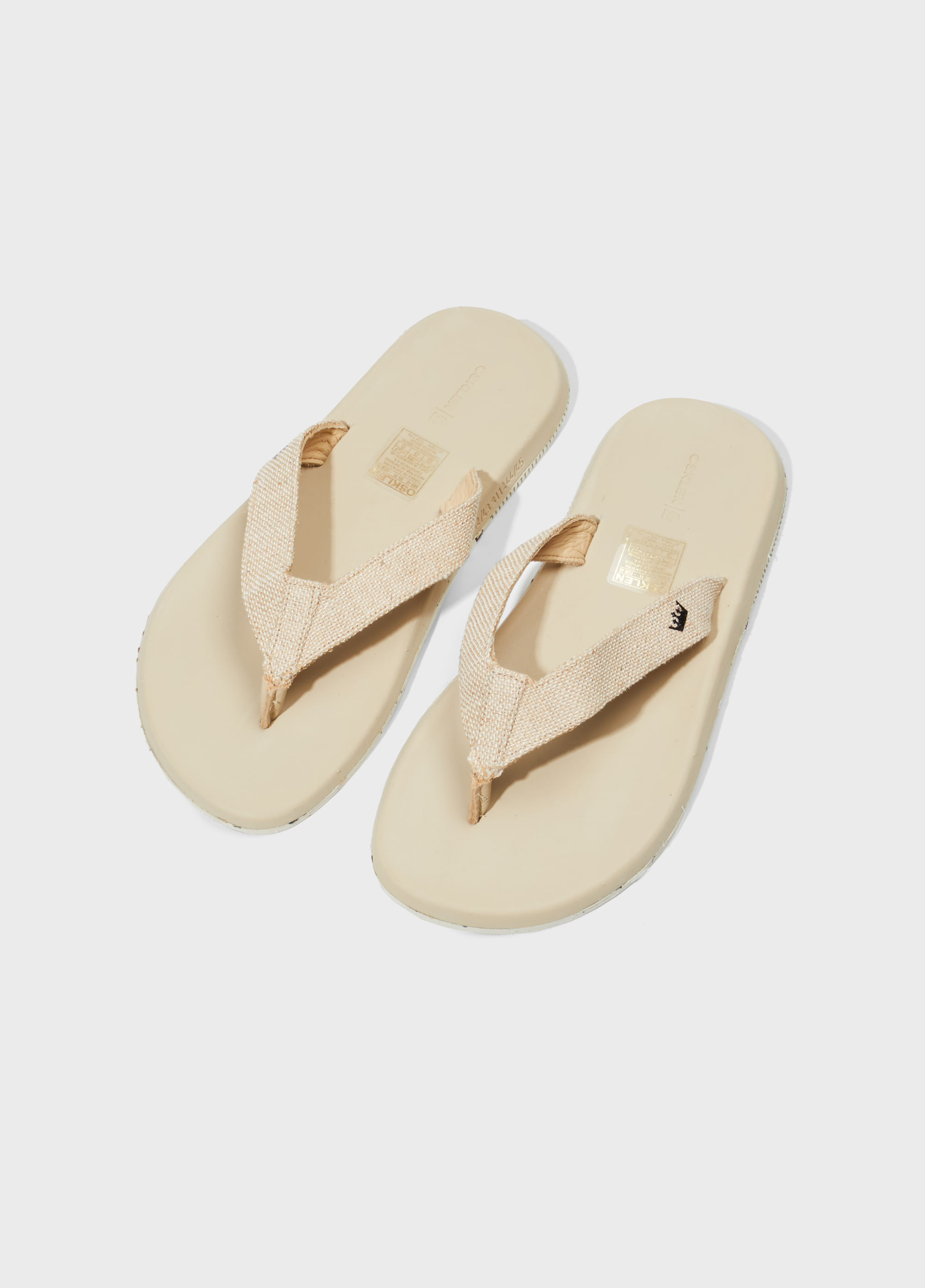 Sandália Osklen com tiras feitas Juta. A Juta é uma planta cultivada sem a utilização de agrotóxicos, herbicidas ou fungicidas e com adubação natural feita através do húmus deixado pelas cheias dos rios. Palmilha feita de EVA Verde, matéria-prima de fonte renovável, proveniente da cana-de-açúcar. Solado em borracha feito com reaproveitamento de tênis moídos da nossa própria produção, combinado ao látex da Amazônia.