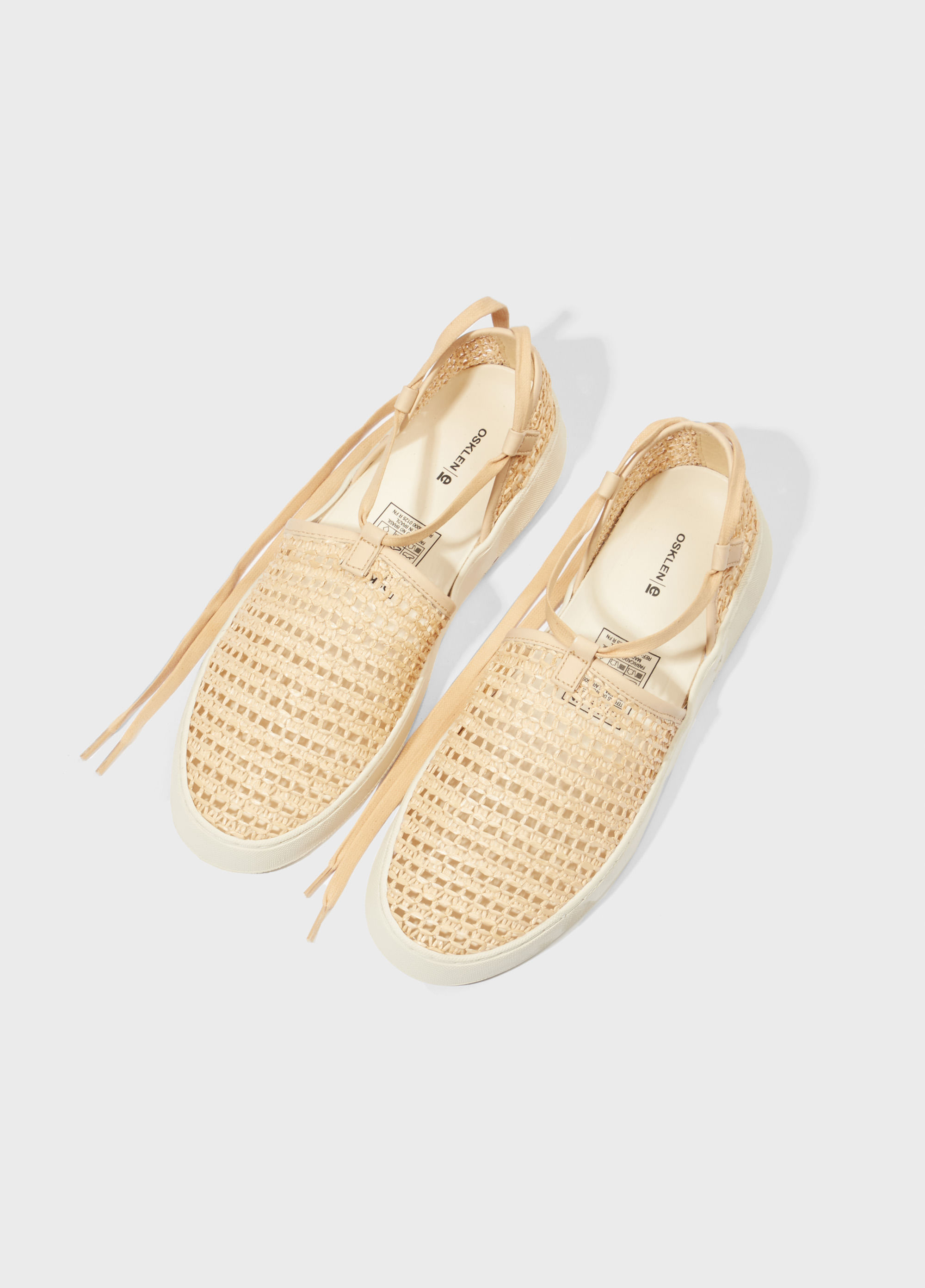 Sandália Soho em ráfia. Modelo com amarração. Palmilha em EVA. Solado de borracha costurado ao cabedal com design exclusivo Osklen, produzido com no mínimo 10% de material reciclado. Produto Re-Design Waste.