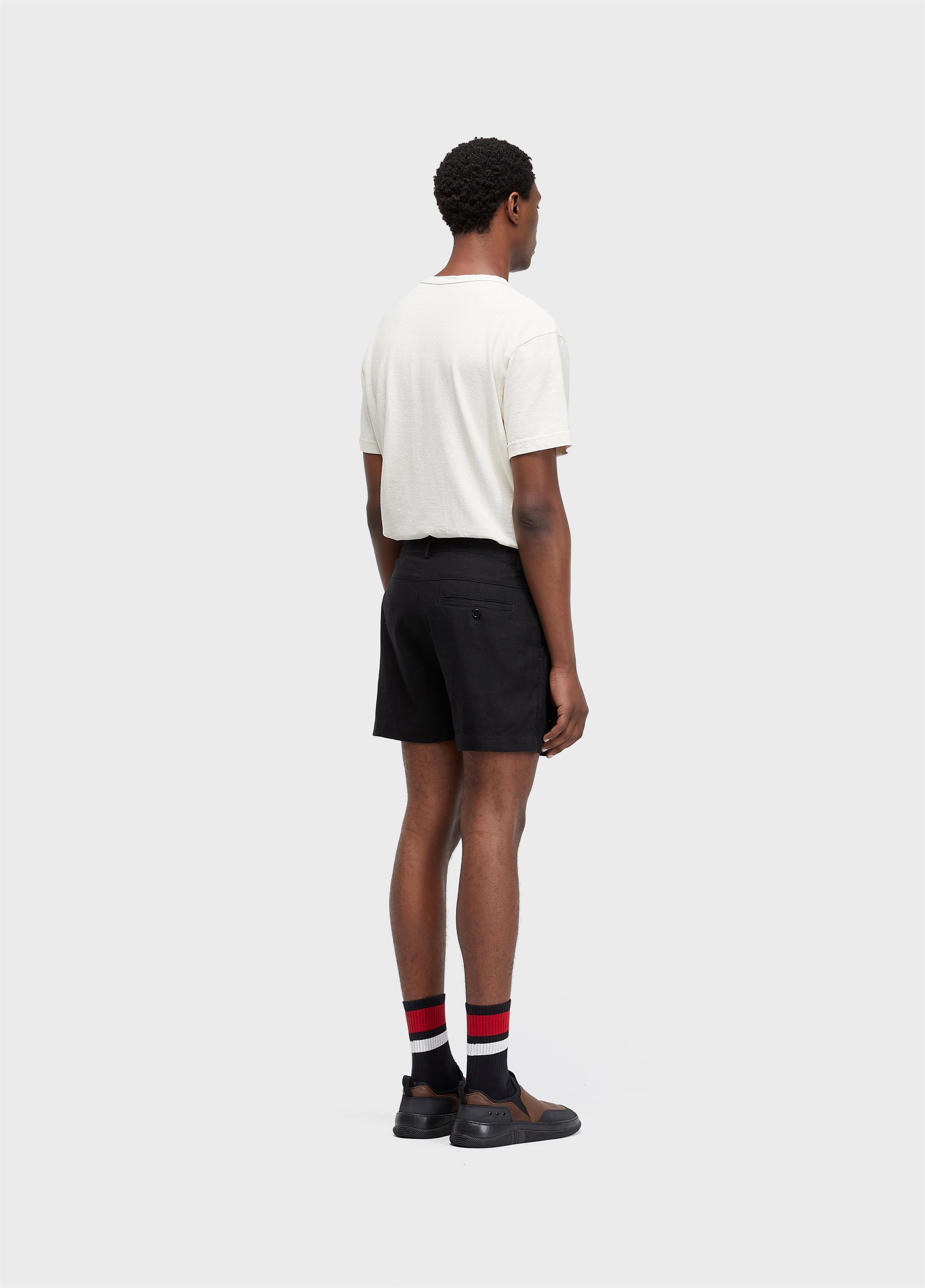 Modelagem com comprimento no meio da coxa; Tecido em linho com viscose; Peça lavada e amaciada.