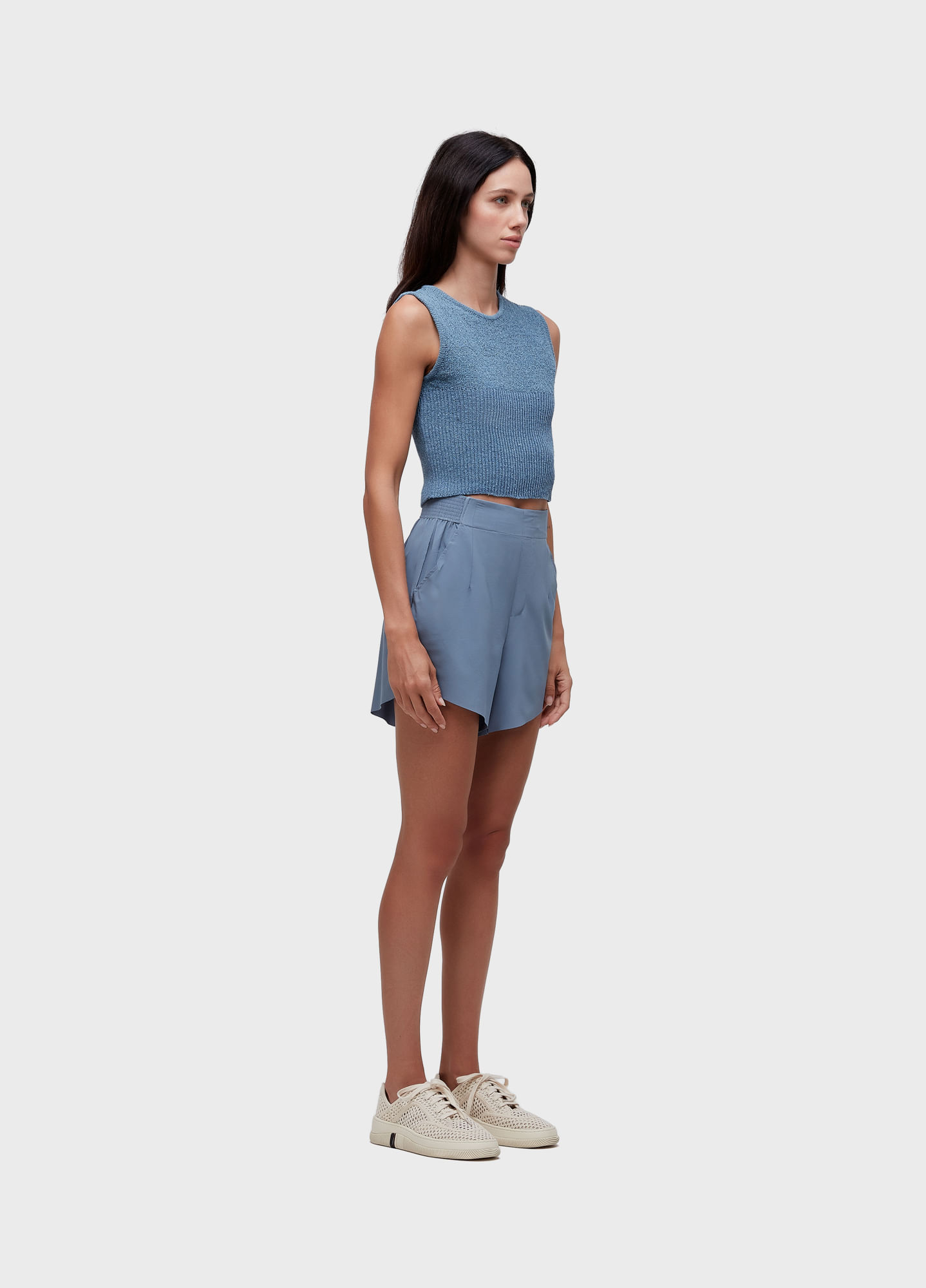 Short feminino, com cós de elástico e bolsos laterais com acabamento a fio em superlight. Tecido levíssimo, com toque acetinado e tecnologia Iron Free: a roupa desamassa sozinha durante o uso tornando este produto perfeito para qualquer momento do dia.