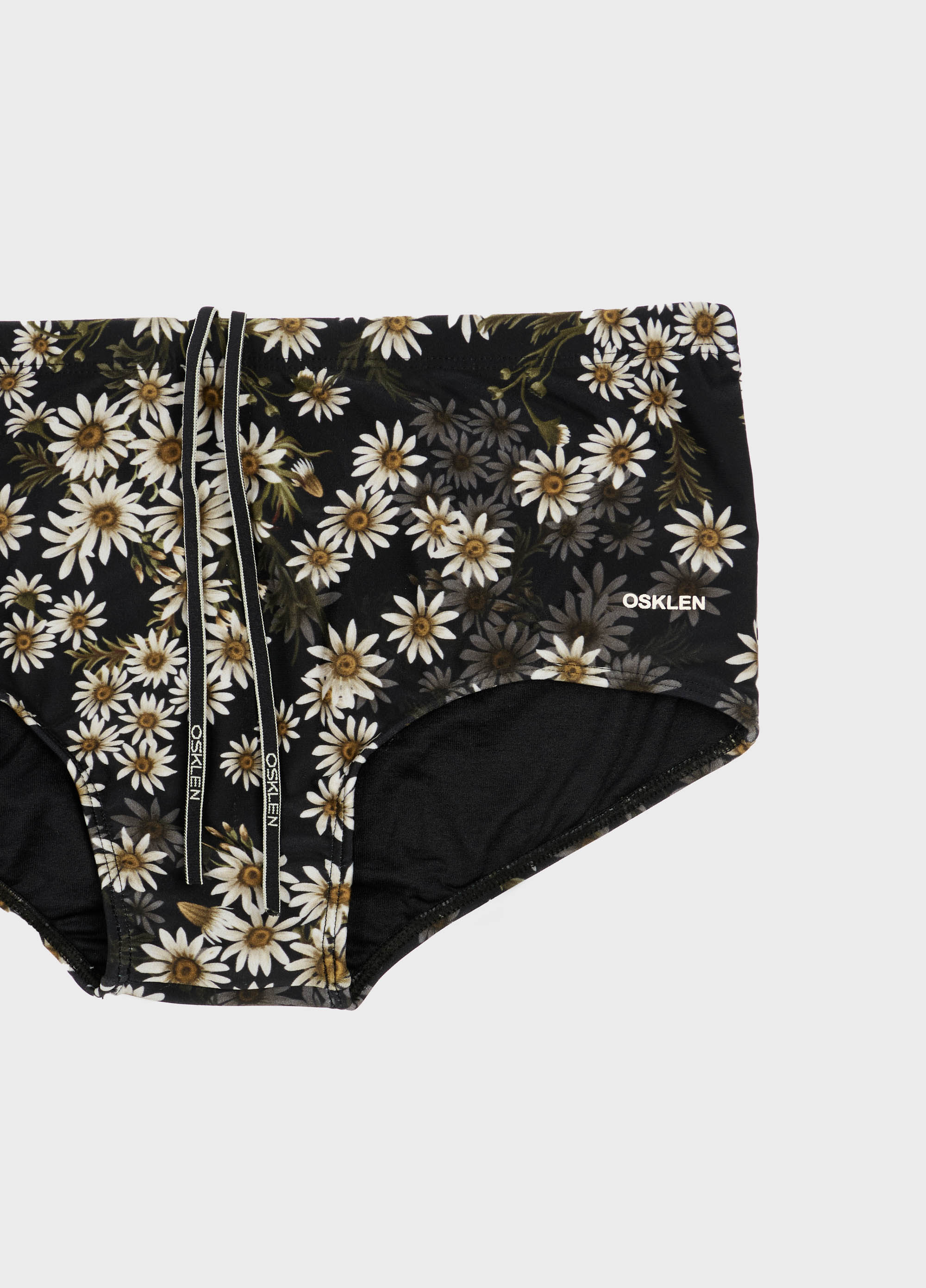 Sunga em modelagem clássica, Lycra leve e estampa Daisy Night e cadarço interno regulável personalizado Osklen.