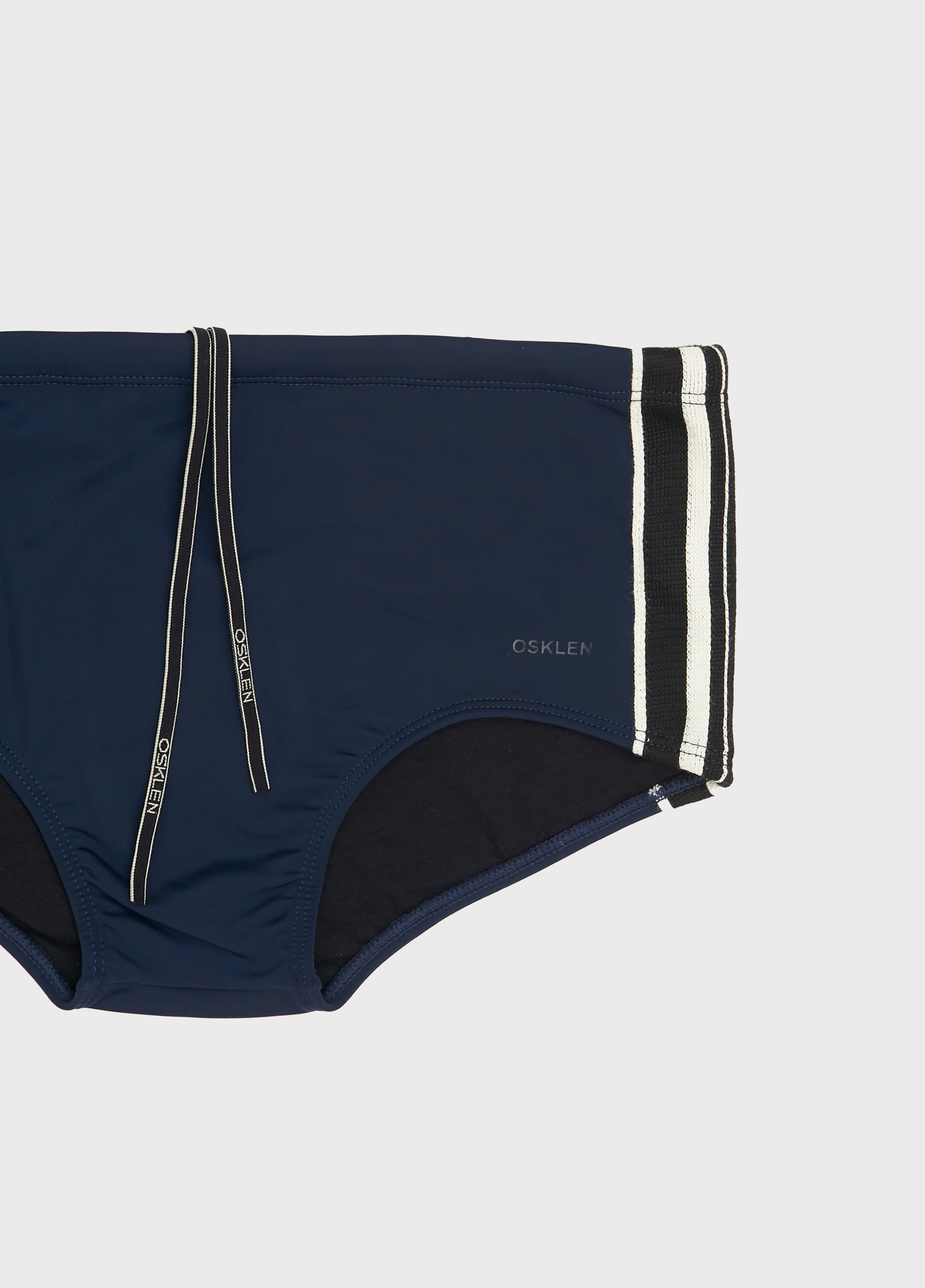 SUNGA LISA COM GALÃO LISTRADO NAS LATERIAS. MODELAGEM PADRÃO SUNGÃO OSKLEN. FORRO DE MALHA RESPIRÁVEL, CADARÇO PERSONALIZADO OSKLEN E GALÃO QUE FORMAM A ASSINATURA PRANCHÃO, EXCLUSIVA OSKLEN.