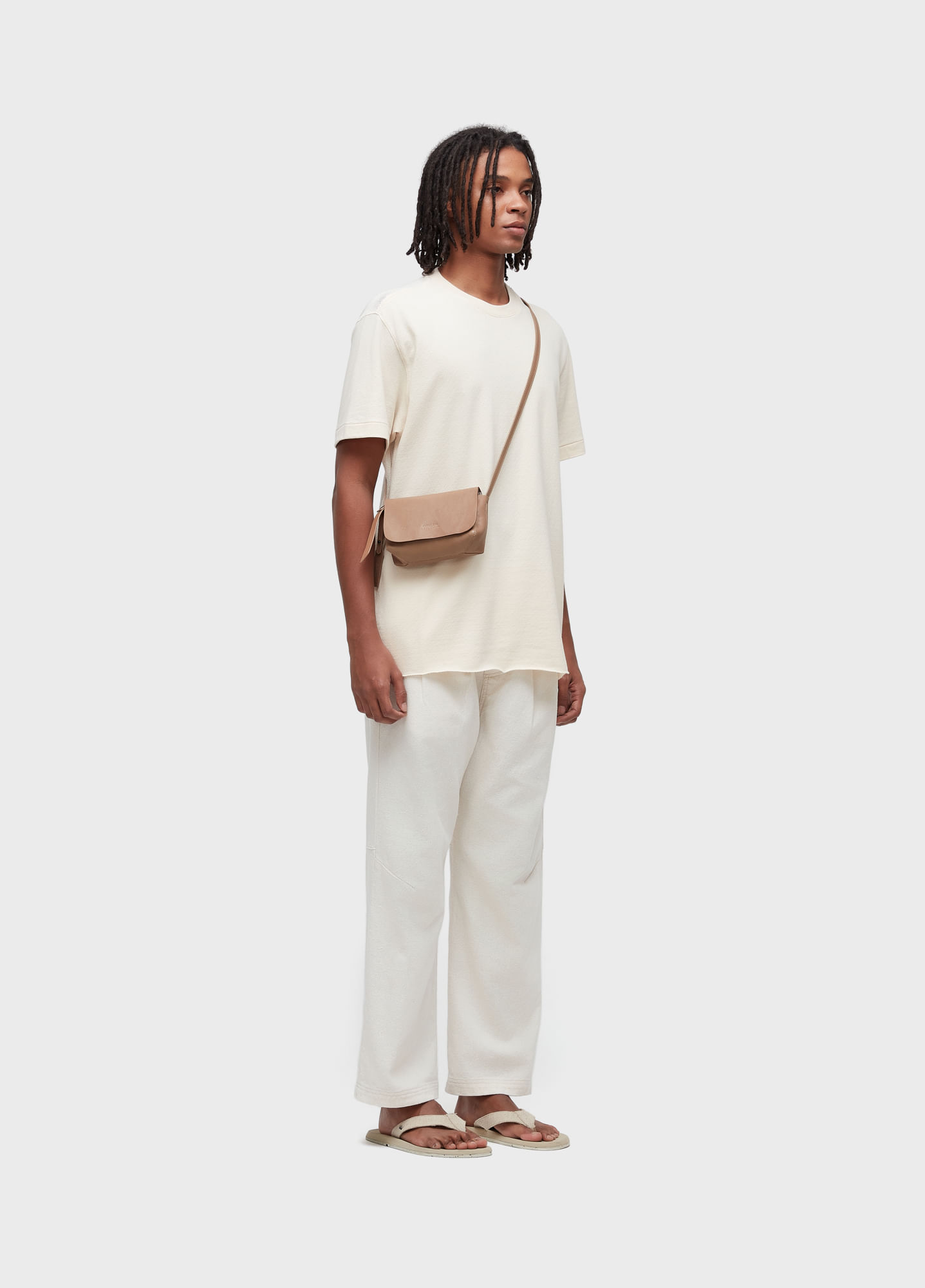 T-shirt masculina produzida com a mistura de dois tecidos, sendo um meia malha e o segundo um tecido rústico nas costas ambos sendo em 100% Algodão Certificado, modelagem Regula. A peça é desenvolvida com algodão nacional certificado que segue critérios minuciosos de redução dos impactos ambientais e sociais, seu processo produtivo utiliza energia renovável, reduz o consumo de água em relação aos processos tradicionais e fomenta as cadeias produtivas brasileiras. Além disso, possui amaciamento Organic Mint Wash, um processo natural formulado à base do óleo essencial da menta orgânica, cultivada em pequenas hortas que fazem parte de um projeto social que promove a recuperação e ressocialização de dependentes químicos. Bandeira: Respect Our People.