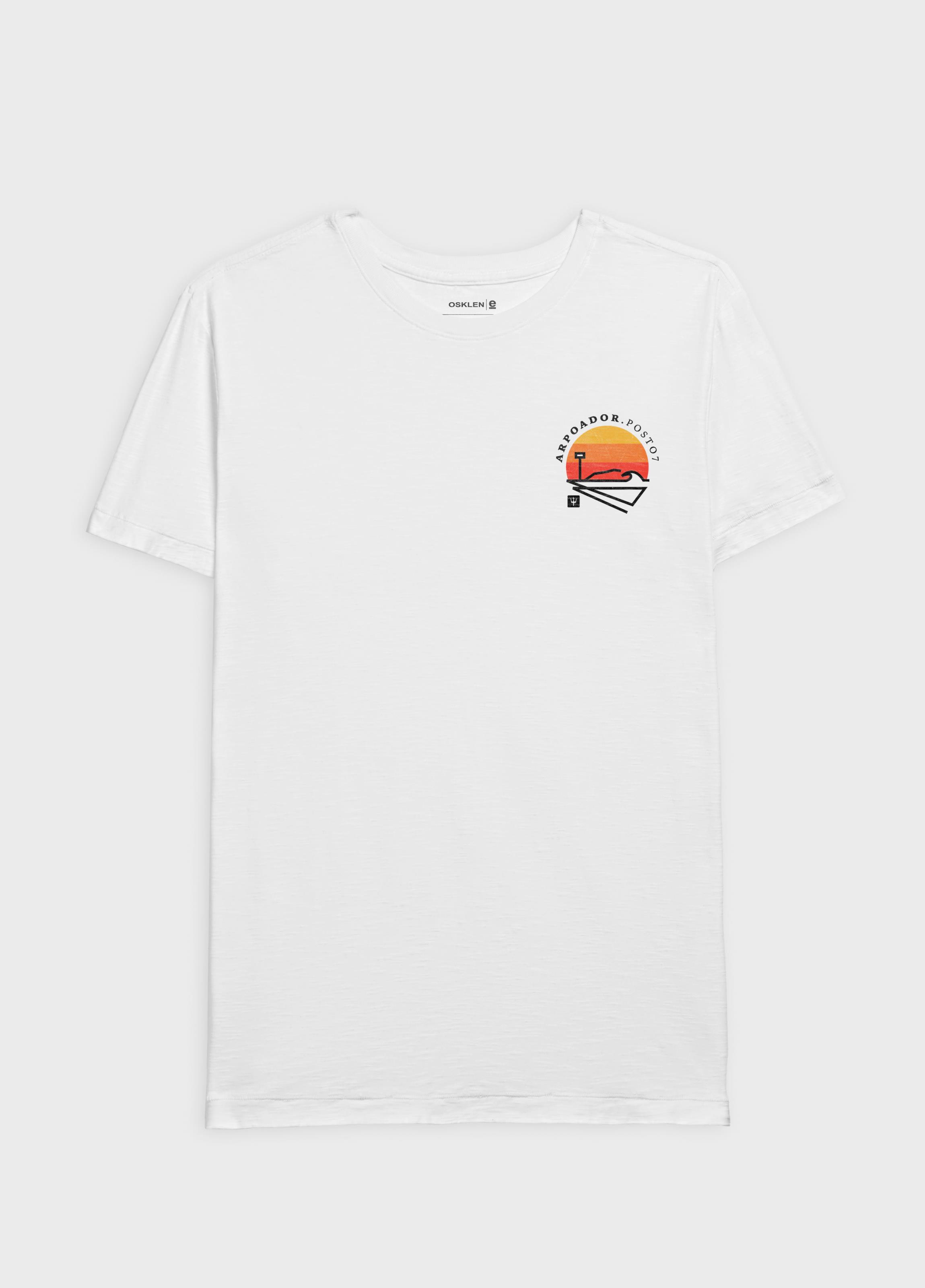 T Shirt masculina em malha flamê, 100% algodão certificado, base de modelagem slim. Bandeira Regenerate Life. A produção do algodão nacional certificado contribui para redução dos impactos ambientais, utiliza energia renovável, reduz o consumo de água e fomenta o aprimoramento social e ambiental das cadeias produtivas brasileiras.