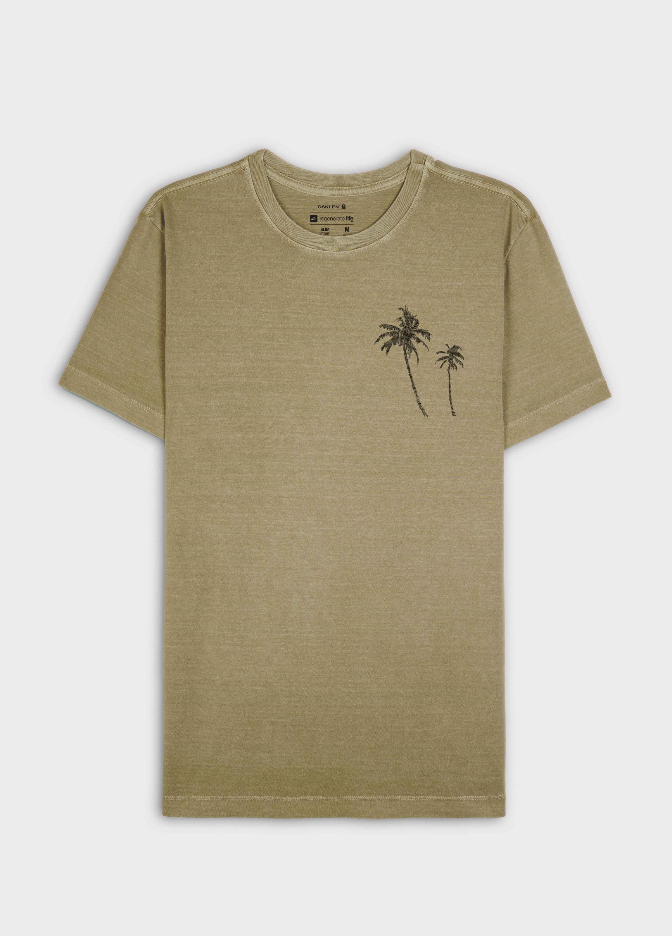 T-Shirt masculina 1/2 malha 100% algodão certificado, base de modelagem Slim, visual lavado, gastinha. A produção do algodão nacional certificado contribui para redução dos impactos ambientais, utiliza energia renovável, reduz o consumo de água e fomenta o aprimoramento social e ambiental das cadeias produtivas brasileiras. Bandeira Regenerate Life.