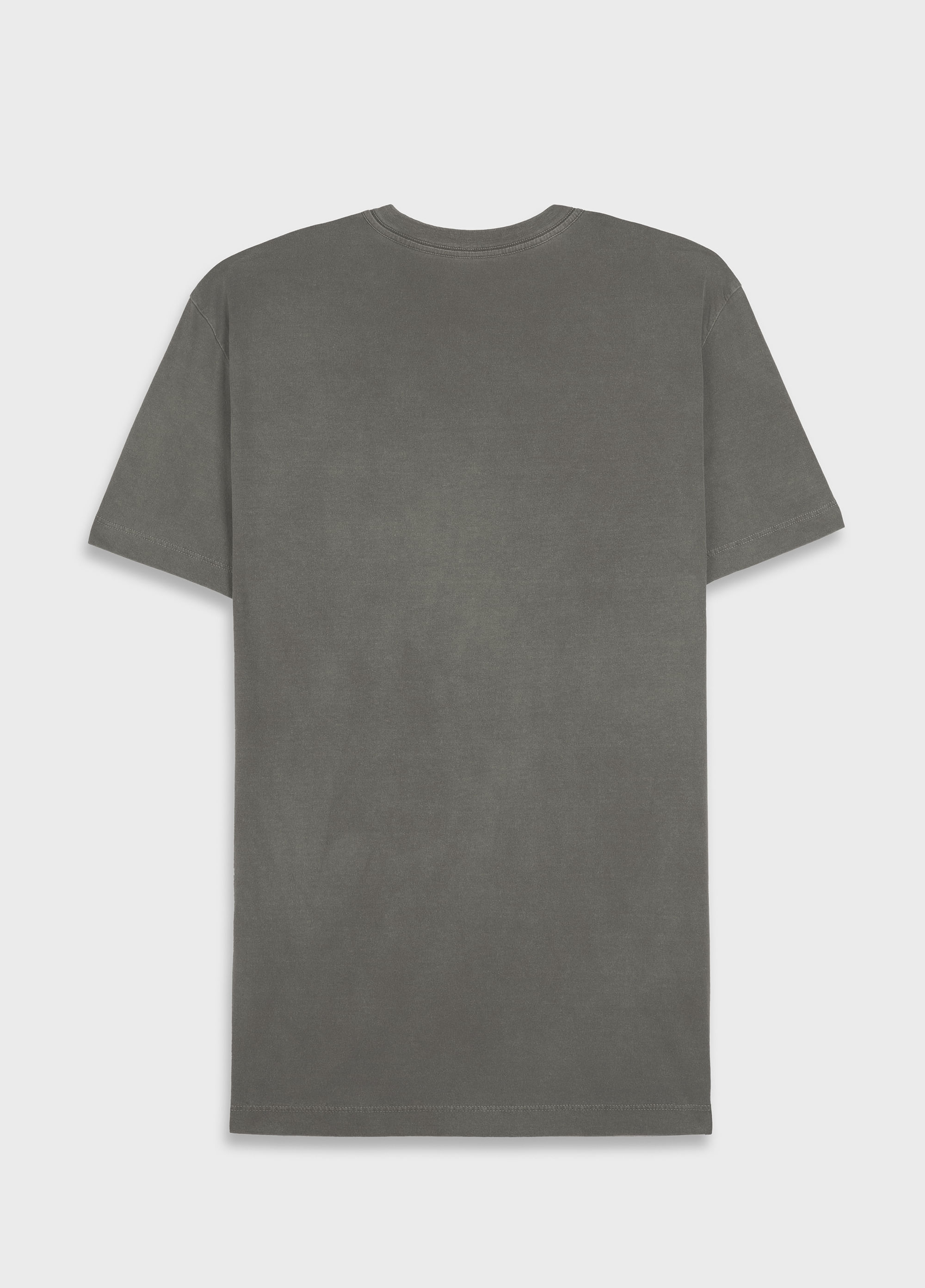 T-Shirt masculina 1/2 malha 100% algodão certificado, base de modelagem Slim, visual lavado, gastinha. A produção do algodão nacional certificado contribui para redução dos impactos ambientais, utiliza energia renovável, reduz o consumo de água e fomenta o aprimoramento social e ambiental das cadeias produtivas brasileiras. Bandeira Regenerate Life.