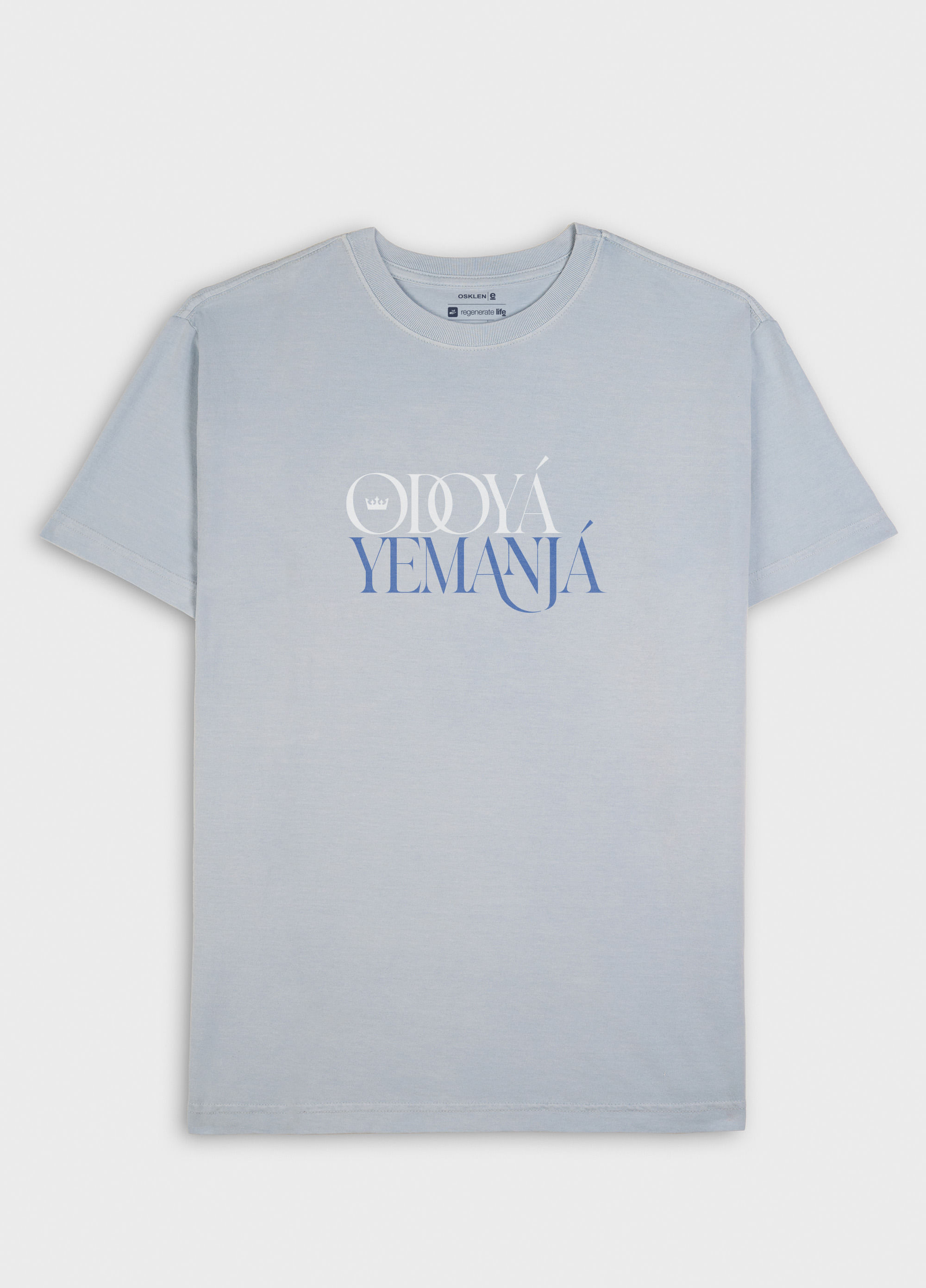 T-Shirt masculina 1/2 malha 100% algodão certificado, base de modelagem Regular, visual lavado, gastinha. A produção do algodão nacional certificado contribui para redução dos impactos ambientais, utiliza energia renovável, reduz o consumo de água e fomenta o aprimoramento social e ambiental das cadeias produtivas brasileiras. Bandeira Regenerate Life.