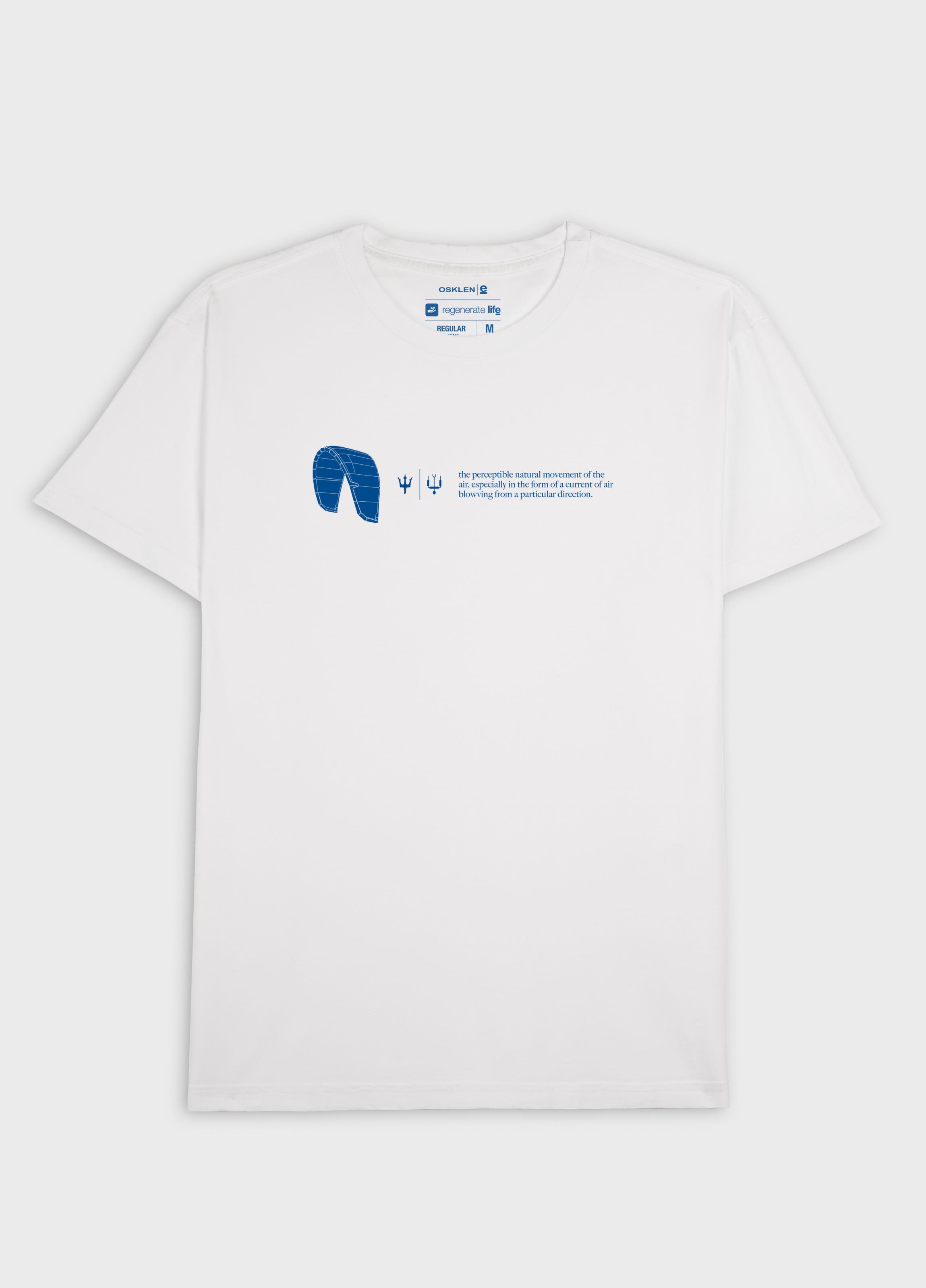 T-Shirt masculina 1/2 malha 100% algodão certificado, base de modelagem Regular, visual lavado, gastinha. A produção do algodão nacional certificado contribui para redução dos impactos ambientais, utiliza energia renovável, reduz o consumo de água e fomenta o aprimoramento social e ambiental das cadeias produtivas brasileiras. Bandeira Regenerate Life.