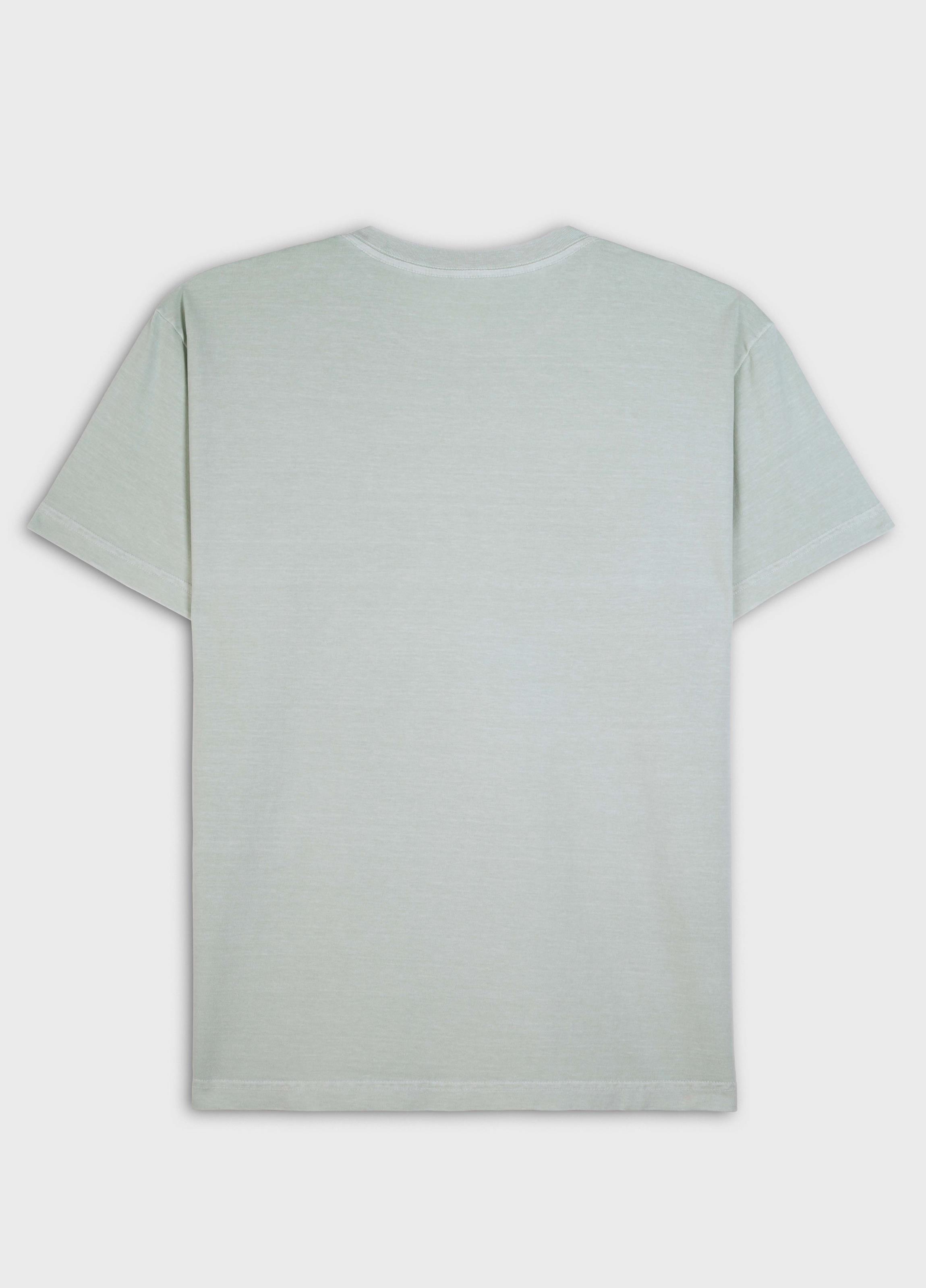 T-Shirt masculina 1/2 malha 100% algodão certificado, base de modelagem Regular, visual lavado, gastinha. A produção do algodão nacional certificado contribui para redução dos impactos ambientais, utiliza energia renovável, reduz o consumo de água e fomenta o aprimoramento social e ambiental das cadeias produtivas brasileiras. Bandeira Regenerate Life.
