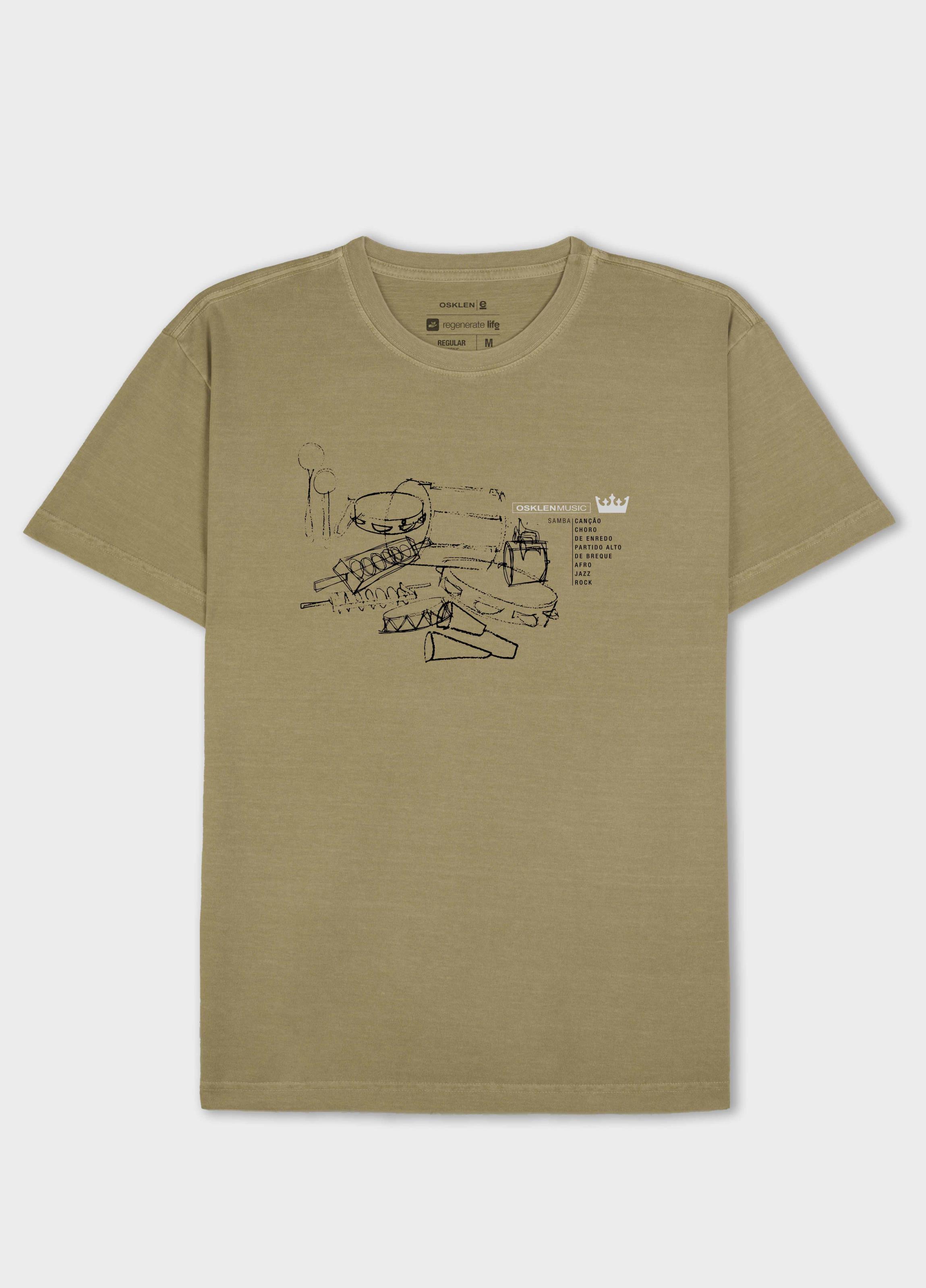 T-Shirt masculina 1/2 malha 100% algodão certificado, base de modelagem Regular, visual lavado, gastinha. A produção do algodão nacional certificado contribui para redução dos impactos ambientais, utiliza energia renovável, reduz o consumo de água e fomenta o aprimoramento social e ambiental das cadeias produtivas brasileiras. Bandeira Regenerate Life.