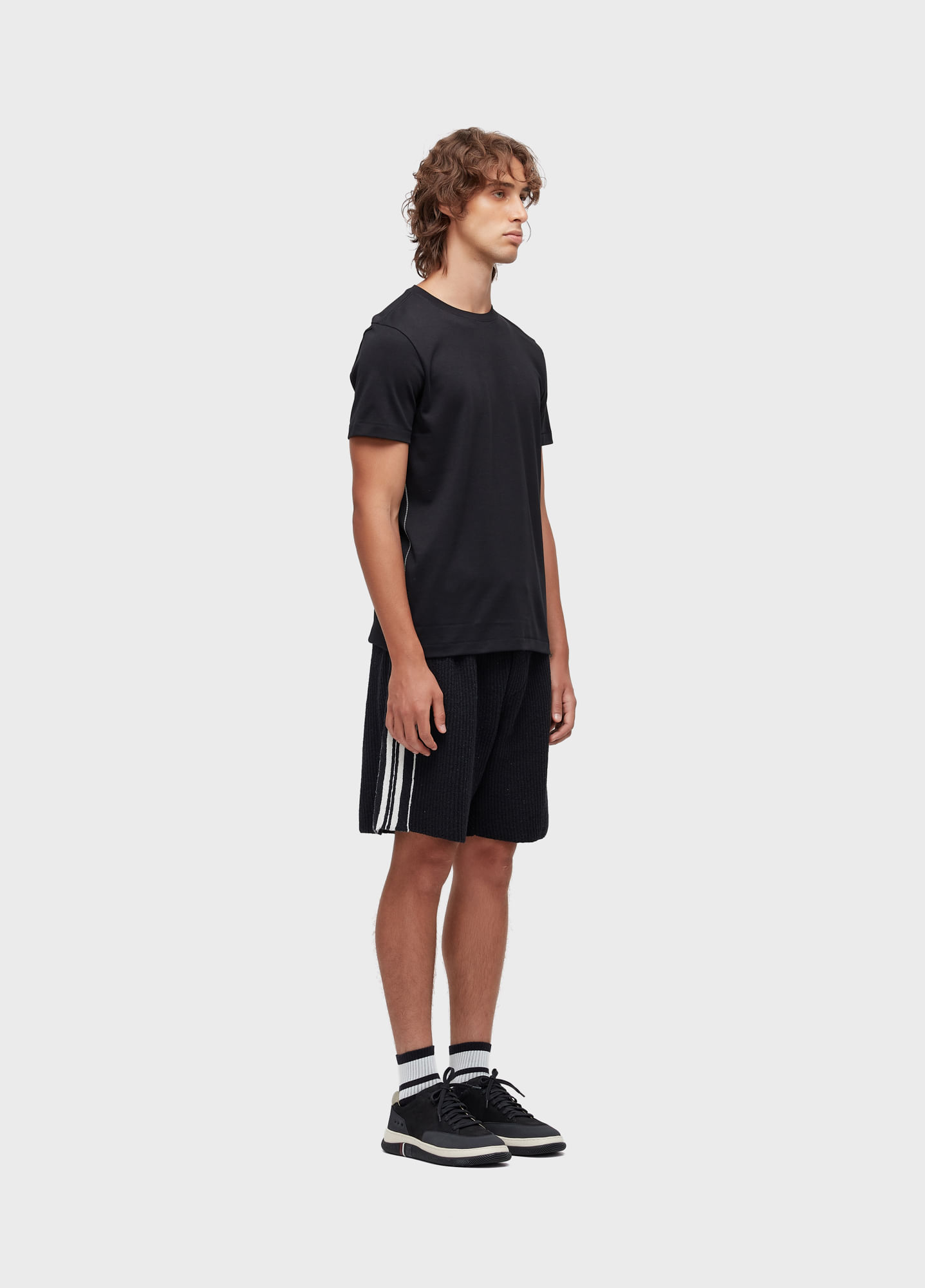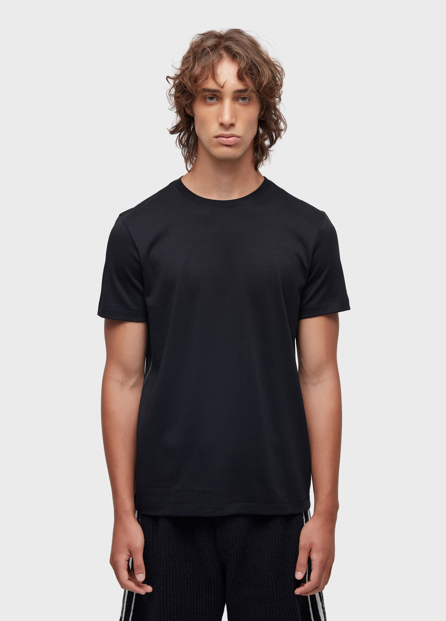 T-Shirt masculina com modelagem fit, ajustada ao corpo e pespontos contrastantes nas laterais. Feita em matéria-prima encorpada 100% algodão pima com beneficiamento especial que proporciona conforto e elasticidade. Peça delicada sujeita a variação de medida. Atenção aos cuidados informados na etiqueta de composição. Lavar peça na água fria e não usar secadora.