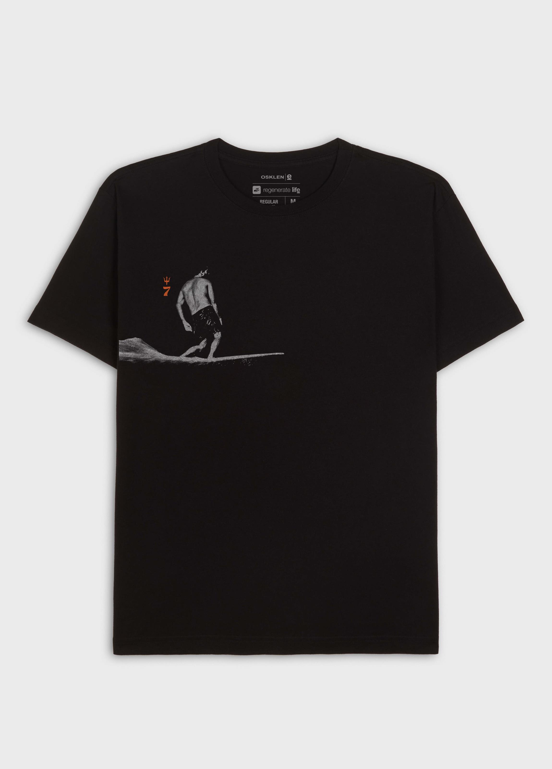 T-shirt masculina 1/2 malha 100% algodão certificado, base de modelagem Regular. Bandeira Regenerate Life. A produção do algodão nacional certificado contribui para redução dos impactos ambientais, utiliza energia renovável, reduz o consumo de água e fomenta o aprimoramento social e ambiental das cadeias produtivas brasileiras.